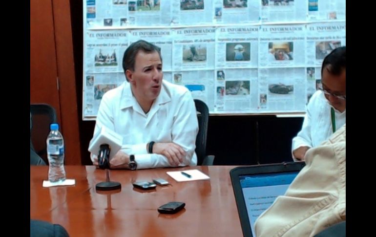 México | El titular de Relaciones Exteriores visita la Mesa de Redacción de EL INFORMADOR José Antonio Meade presume buen crédito de México en el mundo El funcionario explica que mantener el buen nombre del país en el exterior es un factor clave para las relaciones comerciales internacionales Por: EL INFORMADOR 17 de abril de 2013 - 18:08 hs Meade conversó con periodistas de esta casa editorial. EL INFORMADOR / GUADALAJARA, JALISCO (17/ABR/2013).- José Antonio Meade, titular de la Secretaría de Relaciones Exteriores, visita las instalaciones de EL INFORMADOR en el marco de la consulta de la Organización de las Naciones Unidas (ONU) "Realizando el futuro que queremos en América Latina y el Caribe: Hacia una agenda para el desarrollo Post-2015". El canciller mexicano hizo énfasis en que la administración actual tiene el objetivo de cuidar el buen nombre de México. "El buen nombre va aparejado al buen crédito", dijo Meade en relación a cómo repercute esta situación en las alianzas comerciales con otros países. Meade también aseguró que "ante cualquier pronóstico México se está convirtiendo en centro de innovación" y al respecto de la relación con el llamado vecino del norte dijo que "todas las interacciones con Estados Unidos son para el bien de Estados Unidos y para el bien de México". Temas Gobierno de México SRE Mesa de redacción José Antonio Meade Lee También Metro CDMX: Fecha en que abrirán todas las estaciones de la Línea 1 Esta es la verdadera identidad del "Juan Gabriel" captado en París t.A.T.u anuncia concierto en México: precio de boletos y cuándo salen a la venta ¿Será obligatorio presentar la CURP biométrica para trámites escolares? Recibe las últimas noticias en tu e-mail Todo lo que necesitas saber para comenzar tu día Registrarse implica aceptar los Términos y Condiciones