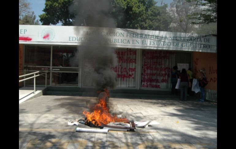 México | Maestros inconformes protestan en Guerrero tras el anuncio de la SEP La CETEG vandaliza oficinas por despido de maestros Maestros inconformes protestan en Guerrero tras el anuncio de la SEP Por: SUN 14 de abril de 2016 - 17:56 hs Reiteran que el magisterio de Guerrero, junto con la CNTE, declarará el paro indefinido en mayo próximo. SUN / D. Téllez CIUDAD DE MÉXICO (14/ABR/2016).- Maestros de la Coordinadora Estatal de Trabajadores de la Educación de Guerrero (CETEG) llevaron a cabo acciones en protesta por el anuncio de que más de mil maestros serán despedidos por no haber presentado la evaluación docente. El pasado lunes, el secretario de Educación Pública, Aurelio Nuño, anunció que aproximadamente mil 300 profesores del estado que no acudieron a la evaluación serán dados de baja. En respuesta, este jueves miembros de la CETEG irrumpieron y vandalizaron las oficinas de la delegación estatal de la SEP. En el lugar realizaron pintas donde además recordaron el caso de los 43 normalistas de Ayotzinapa. Los manifestantes dijeron que están dispuestos a luchar hasta las últimas consecuencias. Reiteraron que el magisterio de Guerrero, junto con la CNTE, declarará el paro indefinido en mayo próximo. “Advertimos que no estamos dispuestos a tolerar la afectación a ni un solo compañero”. Temas SEP Estados Guerrero Manifestaciones en México Evaluación docente Lee También Clima en Ciudad de México hoy: el pronóstico para el domingo 12 de octubre de 2025 Reformas a Ley de Amparo no limita derechos ciudadanos Festival del Pan de Muerto en CDMX: Fechas, horarios y actividades "Raymond" baja su potencia, pero tocará tierra en horas Recibe las últimas noticias en tu e-mail Todo lo que necesitas saber para comenzar tu día Registrarse implica aceptar los Términos y Condiciones