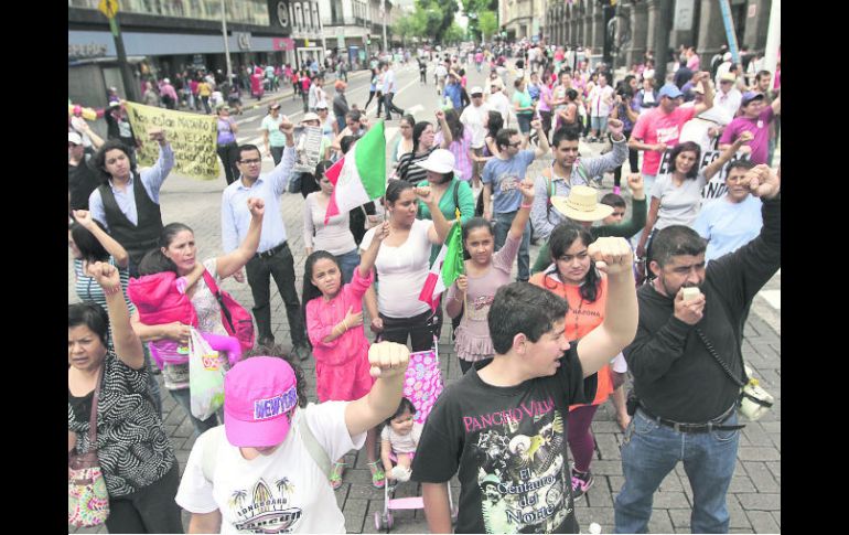 México | Anuncian una megamarcha con 90 organizaciones La CNTE acuerda regresar al Zócalo el miércoles Anuncian una megamarcha con 90 organizaciones, además de un paro cívico de 48 horas, jueves y viernes Por: EL INFORMADOR 15 de septiembre de 2013 - 00:23 hs El Movimiento Magisterial en la Entidad marchó en protesta por el desalojo de maestros de la CNTE en el Zócalo capitalino. EL INFORMADOR / CIUDAD DE MÉXICO (15/SEP/2013).- No claudican. Si bien fueron desalojados por la fuerza del Zócalo capitalino, sitio central de los festejos para celebrar la independencia de México, los integrantes de la Coordinadora Nacional de Trabajadores de la Educación (CNTE) acordaron regresar a la Plaza de la Constitución el próximo miércoles 18 de septiembre a las 10:00 horas. Los maestros, que desde el 19 de agosto mantenían un plantón en el Zócalo en protesta por las leyes secundarias de la Reforma Educativa, que les impone nuevos criterios de evaluación y contratación, fueron desalojados por las Policía Federal en un operativo que desató la violencia en la zona y que derivó en la detención de 31 personas, según las autoridades, todas “provocadores” ajenos al movimiento magisterial. Estos rendían declaración ayer ante las autoridades capitalinas y saldrían en las próximas horas, pues sus delitos no son considerados graves por las leyes del Distrito Federal. Los líderes de la CNTE llegaron a este acuerdo en el Encuentro Nacional Magisterial Popular, la mañana de ayer en el auditorio de la Sección 9 en el Distrito Federal, donde además confirmaron que realizarán una megamarcha acompañados de otras 90 organizaciones. También decidieron llamar a un paro cívico nacional para el jueves y viernes. Previo al encuentro, integrantes de la CNTE afirmaron que mantienen su voluntad de diálogo con las autoridades, luego del desalojo de que fueron víctimas el viernes por parte de las autoridades federales. Los dirigentes de las secciones 22 de Oaxaca, Rubén Núñez y 9 del Distrito Federal, Francisco Bravo, lamentaron el operativo policiaco realizado el viernes por la tarde para desalojar el plantón que mantenían en el Zócalo, pues consideraron que hubo un uso excesivo de la fuerza. POSTURA PERREDISTAFracasó la política Para el líder del PRD en el Senado, Miguel Barbosa, “la política fracasó” con el uso de la fuerza contra los docentes que se manifestaban contra la Reforma Educativa en el Zócalo. “Es urgente sacar de la calle el conflicto con el magisterio, conflicto que se da entre la protesta y la fuerza pública”. Zipizape en la Sección 47 del SNTE Jalisco Al reto verbal siguió el encare, y a éste, los empujones. Los golpes vinieron después, y varias profesoras que integraban una manifestación contra el secretario general de la Sección 47 del Sindicato Nacional de Trabajadores de la Educación (SNTE), Miguel Ángel Rodríguez Noriega, fueron alcanzadas por las agresiones físicas. La mañana de ayer, una comitiva de al menos 300 maestros de esa sección se reunió en el edificio magisterial que se ubica sobre la calle San Juan de Ulúa. Instalaron una bocina y por un rato se mantuvieron afuera del recinto escuchando música. Minutos después de las 11:00 horas, los maestros entraron e instalaron el dispositivo de sonido en el patio central, justo debajo de donde se encuentran las oficinas de la secretaría general. Exigieron que el representante saliera y les explicara por qué se afirma que todos los maestros adheridos al sindicato han dado el visto bueno a la Reforma Educativa. Dado que no hubo respuesta (el sindicato informó a este medio que Rodríguez Noriega se encuentra en la Ciudad de México), los maestros levantaron el tono, desplegaron mantas y exigieron la salida del secretario, a fin de que su puesto lo tomara alguien “con pantalones suficientes para encarar al gobierno”. Después subió el tono de los reclamosy hubo agresiones físicas. Al final, los maestros que resultaron golpeados indicaron que el lunes próximo (el martes, en caso que el puente frene actividades) interpondrían una denuncia de carácter penal “en contra de quien resulte responsable”, por la agresión contra varias de las personas. Temas Manifestaciones en Jalisco Estados Reforma Educativa CNTE Lee También Mascota, el viaje prometido Charros de Jalisco doblega a Guasave y gana su primera serie de la temporada La danza contemporánea abre paso al legado en el arranque del FID 2025 EU alerta sobre posible ruptura del alto el fuego en Gaza por Hamás Recibe las últimas noticias en tu e-mail Todo lo que necesitas saber para comenzar tu día Registrarse implica aceptar los Términos y Condiciones