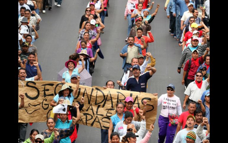 México | La SSP-DF informa que los manifestantes de la CNTE cambian de ruta La CNTE cambia ruta de marcha; maestros van al INEGI La SSP-DF informa que los manifestantes de la CNTE que se dirigían a Tv Azteca y Televisa Chapultepec, cambian de ruta al INEGI Por: SUN 22 de octubre de 2013 - 10:07 hs La manifestación tendra una duración de alrededor de cinco horas EFE / CIUDAD DE MÉXICO (22/OCT/2013).- La Secretaría de Seguridad Pública del Distrito Federal (SSP-DF) informó que los manifestantes de la Coordinadora Nacional de Trabajadores de la Educación ( CNTE) que se dirigirían a las instalaciones de TvAzteca y Televisa Chapultepec, cambiaron la ruta de la manifestación y ahora se dirigirán al Inegi. El Instituto Nacional de Estadística y Geografía ( Inegi) se encuentra ubicado en las calles de Balderas y Victoria, por lo que el operativo policiaco se retiró de las televisoras para ser reubicado en el Instituto. Según el subsecretario de Tránsito de la SSP-DF, Gabriel Carreón, la manifestación iniciará a las 10:00 horas y terminará aproximadamente a las 15:00 horas. Temas Estados Reforma Educativa CNTE Manifestaciones en la Cd. de México Lee También Fallece influencer Fede Dorcaz en presunto intento de robo en la CDMX ¿Bad Bunny fuera del Super Bowl? Este sería el show alternativo Poza Rica, inundado por desbordamiento del río Cazones Bad Bunny permanece sentado durante "God Bless America" y enciende las redes Recibe las últimas noticias en tu e-mail Todo lo que necesitas saber para comenzar tu día Registrarse implica aceptar los Términos y Condiciones
