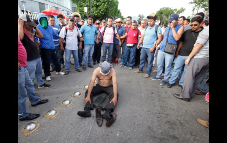 TUXTLA GUTIÉRREZ, CHIAPAS (02/AGO/216).- Docentes de la Coordinadora Nacional de Trabajadores de la Educación (CNTE) retuvieron a un presunto policía, que vestido de civil observaba y documentaba la ocupación de la Torre Chiapas, en esta ciudad, durante las protestas de este martes contra la reforma educativa.Fuentes magisteriales señalaron que al sujeto, identificado como Joselino Arévalo Ramírez, le hallaron una copia de su identificación que lo acredita como policía tercero, aunque no se especifica si pertenece al gobierno federal, estatal o municipal.Agregaron que en su teléfono portátil le encontraron supuestos mensajes en los cuales reportaba a sus jefes las actividades de los maestros disidentes.Los manifestantes detuvieron al hombre, le cubrieron el rostro con su playera y posteriormente lo entregaron a las autoridades ministeriales.La CNTE bloqueó este martes la Torre Chiapas, un edificio que aglutina oficinas del gobierno federal, estatal y municipal.Por la ocupación del inmueble no pudieron ingresar funcionarios y empleados de dependencias gubernamentales, como las estatales Secretarías de Hacienda, Turismo, Economía, Planeación, y de la Secretaría de Relaciones Exteriores.Los docentes bloquearon también los cruces de esas calles que convergen a la zona oriente de Tuxtla Gutiérrez.Los disidentes iniciaron un paro laboral y “plantón” el 15 de mayo; desde entonces sostienen movilizaciones, marchas y bloqueos carreteros, ocupación de casetas de peaje, de edificios públicos, plazas comerciales y medios de comunicación.