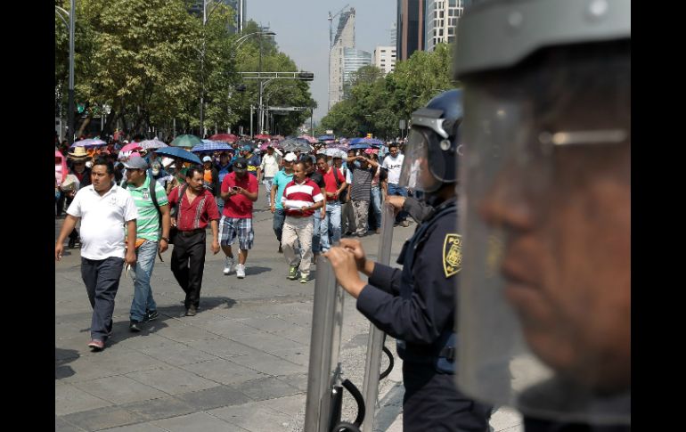 México | Luego de marchar, regresan a su campamento en el Monumento a la Revolución La CNTE pide liberen a detenidos el 7 de junio en Oaxaca De los detenidos, 13 de los cuales se encuentran en un penal de Nayarit, mientras que los otros 12 están en Veracruz Por: SUN 17 de junio de 2015 - 12:56 hs Cientos de maestros de la CNTE provenientes de varios estados mexicanos son custodiados por la policía durante sus protestas. EFE / A. Cruz CIUDAD DE MÉXICO (17/JUN/2015).- Integrantes de la Coordinadora Nacional de Trabajadores de la Educación ( CNTE) regresaron a su campamento que tienen instalado en los alrededores del Monumento a la Revolución, luego de marchar desde la Procuraduría General de la República (PGR). Maestros, principalmente de Michoacán, reiteraron su exigencia de que sea abrogada la reforma educativa y que "no pasarán las evaluaciones a Emilio Chuayffett", titular de la Secretaría de Educación Pública (SEP). Entre los profesores y activistas del Frente Popular Revolucionario (FPR) realizaron un mitin frente a instalaciones de la PGR, ubicada en Paseo de la Reforma, donde también demandaron la libertad de los presos políticos que están en cárceles del país y particularmente de los 25 detenidos el pasado 7 de junio, 13 de los cuales se encuentran en un penal de Nayarit, mientras que los otros 12 están en Veracruz. De acuerdo con los inconformes sus compañeros están siendo sometidos a un proceso penal irregular y expusieron que inicialmente los acusaron por delitos electorales y ahora les quieren imputar manejo de armas molotov y terrorismo. Estos ilícitos, aseguraron, son falsos, pues los 25 integrantes del FPR fueron detenidos poco antes de llegar a la colonia donde viven en el estado de Oaxaca, cuando venían de hacer actividades diversas. Al plantón, custodiados por elementos de la Secretaría de Seguridad Pública del Distrito Federal (SSP-DF) han arribado profesores de Michoacán, mientras que se han retirado los originarios de Oaxaca, donde hoy se reiniciaron las clases luego de un paro. Temas Estados Reforma Educativa CNTE Manifestaciones en la Cd. de México Detenidos en México Recibe las últimas noticias en tu e-mail Todo lo que necesitas saber para comenzar tu día Registrarse implica aceptar los Términos y Condiciones