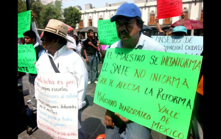 México | Cerca de 40 profesores se manifiestan afuera de la SEP La CNTE prevé paro nacional el 25 de mayo Cerca de 40 profesores de las Sección 36 del Valle de México se manifiestan afuera de la SEP para exigir debate sobre la Reforma Educativa Por: SUN 4 de mayo de 2013 - 15:54 hs Durante el evento los profesores mostraron cartulinas con diversos mensajes que al final fueron pegadas en la puerta de la dependencia. SUN / CIUDAD DE MÉXICO (04/MAY/2013).- Alrededor de 40 profesores de la Coordinadora Nacional de Trabajadores de la Educación (CNTE) de la Sección 36 del Valle de México, se manifestaron afuera de las puertas de la Secretaría de Educación Pública (SEP) para exigir que autoridades de la dependencia debatan con ellos la aplicación de la Reforma Educativa. En entrevista, el vocero, Pedro Ramírez, dijo que aún se estudia la posibilidad de paro nacional para el 25 de mayo, pero dependerá que el diálogo que los dirigentes establezcan con la Secretaría de Gobernación la próxima semana, "contrario a lo que se ha dicho, nosotros somos los principales interesados en el diálogo", afirmó. Durante el evento los profesores mostraron cartulinas donde se leía "La educación no es mercancía, es un derecho universal", "Fuera asesino de la SEP", "Evaluar no es medir" y "No a la reforma educativa". Al final, las cartulinas fueron pegadas en la puerta de la dependencia. "Lo primero que insistimos es que la SEP nos escuche, hace dos meses nos recibieron los funcionarios de la dirección de atención ciudadana, nos prometieron que nos iban a llamar, tanto aquí como en Toluca, donde nos corresponde, pero en dos meses nada. Venimos el cuatro de marzo a las ocho de la noche, para que no nos acusen de que no trabajamos", afirmó Pedro Ramírez. Temas SEP Estados Ciudad de México CNTE Manifestaciones en México Lee También ¿Dónde ver EN VIVO el partido amistoso México vs Colombia? Dónde ver EN VIVO el México vs Argentina por el Mundial Sub-20 Trump amenaza con "incremento masivo" de aranceles a China Dólar amanece encarecido este 10 de octubre Recibe las últimas noticias en tu e-mail Todo lo que necesitas saber para comenzar tu día Registrarse implica aceptar los Términos y Condiciones