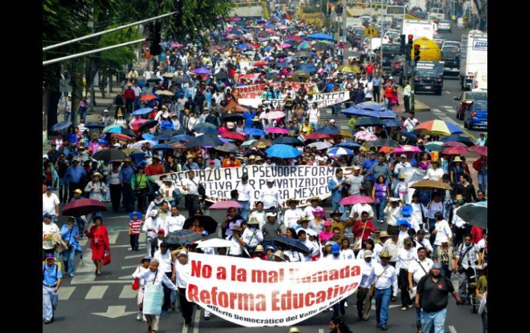 México | Cerca de cien integrantes de la coordinadora bloquearon los accesos por dos horas La CNTE protesta contra reforma educativa en sede del PAN Cerca de cien integrantes de la coordinadora bloquearon los accesos a la sede por alrededor de dos horas Por: SUN 21 de mayo de 2013 - 17:11 hs Los manifestantes de la CNTE se retiran del CEN del PAN luego de que una comisión fue recibida por el secretario general. ARCHIVO / CIUDAD DE MÉXICO (21/MAY/2013).- Integrantes de la Coordinadora Nacional de Trabajadores de la Educación (CNTE) se manifestaron a las afueras de la sede nacional del PAN para protestar por la reforma educativa. Alrededor de cien personas pertenecientes a esa organización estuvieron por alrededor de dos horas a las afueras del Comité Ejecutivo Nacional (CEN) del PAN, donde este martes se realiza una reunión entre senadores y el presidente del partido Gustavo Madero para elegir al nuevo coordinador de esta fracción parlamentaria en el Senado. Los manifestantes bloquearon los tres accesos que dan a la sede nacional del PAN. Estuvieron a las afueras de las instalaciones del partido, donde colocaron pancartas en rechazo a la reforma. De acuerdo con las personas que encabezaron la protesta, buscan que se escuche a los maestros para llevar a cabo una reforma educativa. Una comisión que ingresó a la sede nacional del PAN, explicó que no le ven nada de educativa a la reforma, y más bien son cambios en lo laboral. Los maestros se reunieron con Tomás Trueba, secretario general adjunto del CEN del PAN. Ildegardo García insistió en que se debe escuchar a los maestros, y dijo que por lo pronto dejaron patente su pronunciamiento. Reconoció que es necesaria una reforma educativa, pero se debe escuchar a todos. Acto seguido abandonaron el lugar. Temas PAN Estados Reforma Educativa Ciudad de México CNTE Lee También Clima en Ciudad de México hoy: el pronóstico para el martes 21 de octubre de 2025 Palabras de Trump, “groseras e ignorantes con Colombia”: Gustavo Petro Detienen a presunto autor intelectual del asesinato de líder limonero en Apatzingán Este será el costo del Gas Bienestar en CDMX en la semana del 20 al 25 de octubre Recibe las últimas noticias en tu e-mail Todo lo que necesitas saber para comenzar tu día Registrarse implica aceptar los Términos y Condiciones