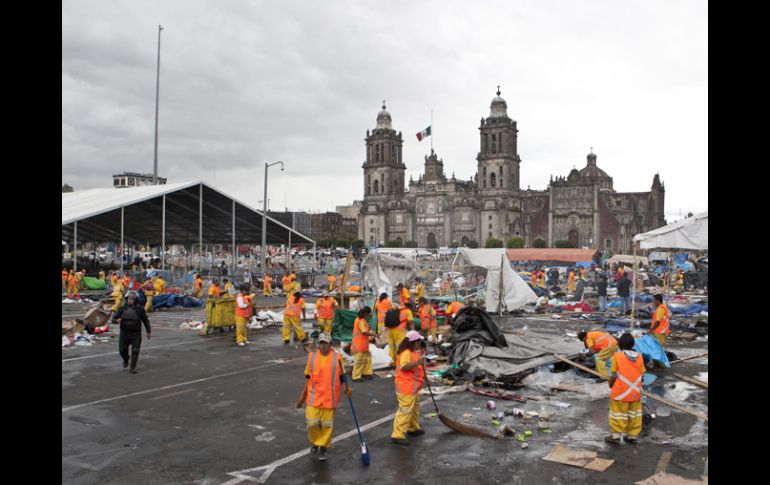 México | Por el momento, algunos maestros se encuentran en el Monumento a la Revolución La CNTE ve exceso en uso de la fuerza en desalojo Francisco Bravo, dirigente de la sección 9 de la Coordinadora Nacional de Trabajadores de la Educación afirma que hubo excesos en el desalojo Por: SUN 14 de septiembre de 2013 - 10:34 hs Empleados de limpia capitalinos levantan los restos del plantón del CNTE. AP / CIUDAD DE MÉXICO (14/SEP/2013).- Francisco Bravo, dirigente de la sección 9 de la Coordinadora Nacional de Trabajadores de la Educación ( CNTE), indicó que hubo un "exceso en el uso de la fuerza" durante el desalojo de ayer viernes en el Zócalo capitalino, por parte de la Policía Federal. El dirigente indicó que ayer viernes "hubo un grupo de provocadores y luego la Policía Federal se suelta", durante el desalojo. Además, Bravo señaló que los miembros de la CNTE realizarán una asamblea en las próximas horas. Por el momento, algunos maestros se encuentran en el Monumento a la Revolución. Algunos arman carpas y desayunan, en espera de la asamblea. Temas Estados Distrito Federal CNTE Recibe las últimas noticias en tu e-mail Todo lo que necesitas saber para comenzar tu día Registrarse implica aceptar los Términos y Condiciones