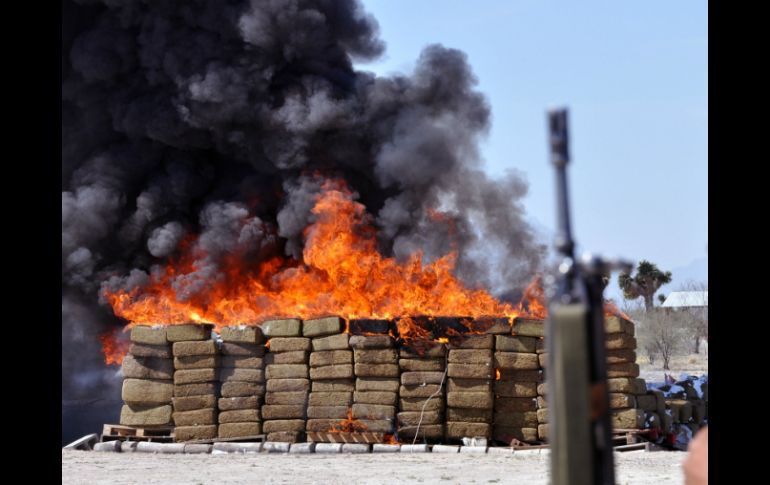 México | En el evento también destruyeron 29 kilos de cocaína y una tonelada de metanfetamina La PGR incinera más de 27 toneladas de mariguana en Sonora En el evento también destruyeron 29 kilos de cocaína y una tonelada de metanfetamina Por: NTX 12 de mayo de 2016 - 15:25 hs La quema se realizó ante representantes de la dependencia, quienes comprobaron el peso de los enervantes. NTX / ARCHIVO CIUDAD DE MÉXICO (12/MAY/2016).- Personal de la Procuraduría General de la República ( PGR) incineró en Sonora 27 toneladas 665 kilogramos de mariguana y más de una tonelada de metanfetamina, entre otras drogas. La quema tuvo lugar en la Estación Radiomonitora ubicada en la ciudad de Hermosillo, ante representantes del órgano interno de control de la dependencia, quienes supervisaron y comprobaron el peso de los enervantes. En el evento también se destruyeron 29 kilos 350 gramos de cocaína, más de 21 kilos de heroína y 33 kilos 343 gramos de dihidromorfina, conforme a lo dispuesto en el calendario nacional de incineración de narcóticos. La PGR informó en un comunicado que los enervantes estaban relacionados con 15 carpetas de investigación, las cuales inició el agente del Ministerio Público Federal por delitos contra la salud en diferentes modalidades. Las drogas fueron aseguradas en distintos operativos realizados en Sonora por elementos de la PGR, Secretaría de Marina-Armada de México (Semar), Policía Federal y Seguridad Pública del estado. Temas PGR Estados Cocaína Sonora Mariguana Lee También Asesinan a maestra en Guerrero presuntamente por una calificación Llega "Melissa" al Atlántico; esta es la trayectoria de la tormenta A punto de aparecer el ciclón "Melissa"; a esta distancia está de México Tormenta tropical podría formarse en este punto del Pacífico mexicano Recibe las últimas noticias en tu e-mail Todo lo que necesitas saber para comenzar tu día Registrarse implica aceptar los Términos y Condiciones