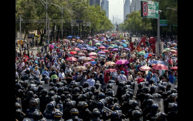 México | El titular de la dependencia asegura que no hubo intención de desalojar a profesores La SSPDF reporta saldo blanco tras marcha de maestros El titular de la dependencia asegura que no hubo intención de desalojar a los profesores Por: SUN 11 de junio de 2015 - 18:06 hs CIUDAD DE MÉXICO (11/JUN/2015).- Hiram Almeida Estrada, titular de la Secretaría de Seguridad Pública del Distrito Federal (SSPDF), reportó saldo blanco tras la marcha que realizaron integrantes de la Coordinadora Nacional de Trabajadores de la Educación (CNTE) del Monumento a la Revolución al Ángel de la Independencia, y en sentido contrario, del Ángel a la Plaza de la República. En entrevista, el funcionario aseguró que el operativo que implementaron policías capitalinos fue exitoso porque se logró recuperar la vialidad de Reforma. Dijo que no hubo intención de desalojar a los profesores, "lo que es muy necesario es recuperar los niveles de habitabilidad en la ciudad y de la gente, a la que todos tienen derecho, y en eso estamos buscando las coincidencias, privilegiando los derechos humanos tanto de quien tiene la libre manifestación de ideas como de la propia gente, los ciudadanos de la capital". Almeida afirmó que la corporación a su cargo siempre privilegia el diálogo y respeta los derechos humanos de la gente, así como los de la población civil en general "por eso hoy se recupera la vialidad en Reforma". "Somos muy respetuosos de la libre manifestación de ideas, hoy lo que era necesario fue recuperar aquellos bloqueos que se instalaban sobre Paseo de la Reforma, por eso se realiza esta acción", insistió. Pasado el medio día, alrededor de seis mil 800 maestros de la CNTE marcharon del Monumento a la Revolución al Ángel de la Independencia, donde permanecieron un momento y después regresaron a la Plaza de la República, donde permanece su campamento. Temas SSPDF Estados Distrito Federal CNTE Manifestaciones en la Cd. de México Recibe las últimas noticias en tu e-mail Todo lo que necesitas saber para comenzar tu día Registrarse implica aceptar los Términos y Condiciones