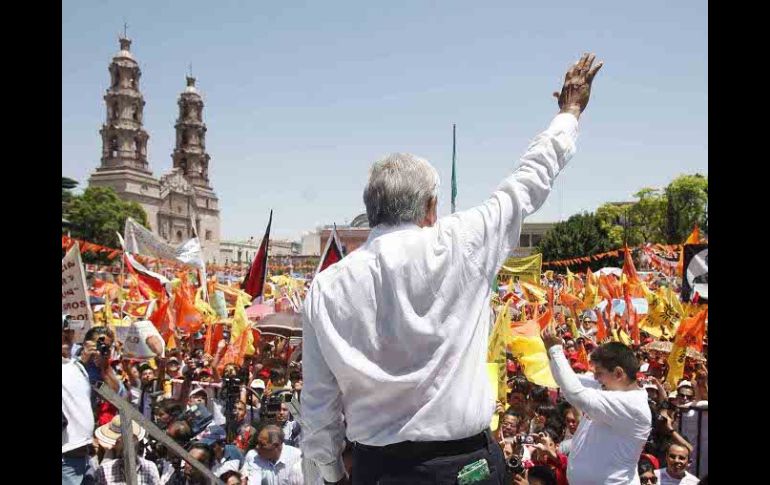 México | El tabasqueño ofrece encabezar un buen gobierno y combatir la corrupción López Obrador afirma que remediará la crisis en el país El aspirante presidencial dice que si se cuida el dinero propiedad del pueblo, el país tendrá recursos para poder impulsar su desarrollo Por: NTX 11 de junio de 2012 - 20:04 hs Andrés Manuel López Obrador durante un acto de campaña celebrado en el centro de Aguascalientes. EL UNIVERSAL / AGUASCALIENTES, AGUASCALIENTES (11/JUN/2012).- El candidato presidencial por el Movimiento Progresista, Andrés Manuel López Obrador, expuso que no hay ninguna razón para la decadencia que está afectando a México, ya que este es uno de los países con más recursos naturales en el mundo. En un discurso que duró alrededor de 45 minutos, el político tabasqueño afirmó que ''somos uno de los países con más recursos naturales en el mundo, y tiene un pueblo bueno, noble y trabajador; ¿por qué la crisis?'', preguntó. Y respondió: ''por el mal gobierno, ya lo vamos a remediar, ya faltan unos cuantos días'', señaló ante sus seguidores, entre ellos jóvenes de distintas universidades del estado. López Obrador pidió no seguir lucrando con la pobreza que sufren muchos mexicanos, sobre todo en tiempos electorales, donde les ofrecen de todo, desde ''marranos, cerdos, puercos''. El abanderado de los partidos de la Revolución Democrática (PRD), del Trabajo (PT) y del Movimiento Ciudadano ofreció encabezar un buen gobierno y combatir la corrupción para que se dé paso al desarrollo del país. ''Y no tengo ninguna duda, tenemos presupuesto como ayer lo dije (en el debate), el presupuesto de este año es de 3.7 billones de pesos y es dinero de todo el pueblo, pero con la corrupción reinante y con la protección siempre se queda arriba, no se distribuye con justicia'', aseguró. El aspirante presidencial dijo que si se cuida el dinero propiedad del pueblo, el país tendrá recursos para poder impulsar su desarrollo, y aseguró que para que haya empleos y bienestar en México, no se van a crear más impuestos. ''No vamos a endeudar al país, la fórmula es sencilla: abatir la corrupción porque es mucho el dinero que se va por el caño de la corrupción. Lo segundo: gobierno austero, sin lujos'', precisó. Previo a concluir su discurso, se refirió al movimiento #YoSoy132 y dijo que los jóvenes están despertando las conciencias. ''Miren la forma en que los jóvenes se están comportando, están despertando las conciencias y mucho lo que están haciendo los jóvenes de un mes para acá'', comentó. ''Es un movimiento el 132 limpio, fresco, auténtico, creativo, es un movimiento de la esperanza, por eso que vivan los jóvenes, que vivan los estudiantes'', dijo ante el jubilo de los presentes. Al llegar al estrado cedió la palabra a los candidatos de Morena (Movimiento de Regeneración Nacional) para que hablaran sobre sus propuestas. López Obrador llegó con una hora de retraso a la Plaza de la Patria, donde lo aguardaban sus simpatizantes, pese a que el calor rebasaba los 36 grados centígrados y ante quienes afirmó estar arriba en las encuestas. Temas PRD AMLO Partido del Trabajo Elecciones México 2012 Movimiento Ciudadano Lee También FGJ investiga cuál de los detenidos mató al abogado David Cohen Marchas CDMX: HOY, 17 de octubre, estas son las afectaciones viales Más de 100 localidades siguen incomunicadas en 5 estados tras lluvias Aumenta a 72 la cifra de muertos por fuertes lluvias en México Recibe las últimas noticias en tu e-mail Todo lo que necesitas saber para comenzar tu día Registrarse implica aceptar los Términos y Condiciones