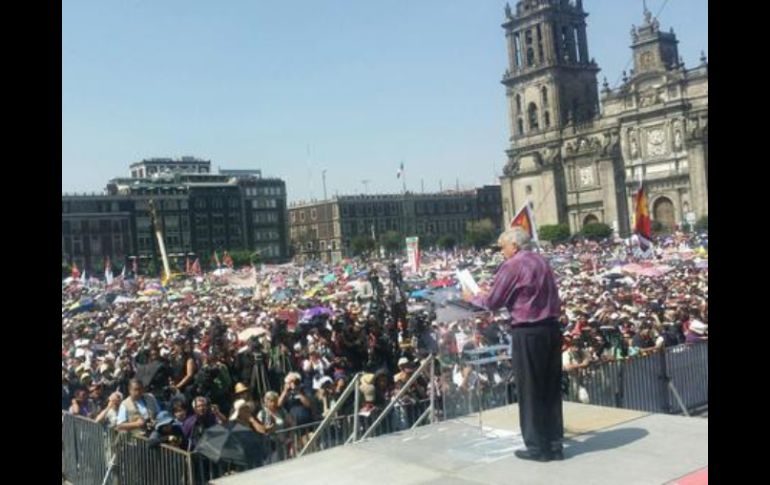 México | Durante su mitin en el Zócalo, pide esclarecer la desaparición de los normalistas López Obrador pide 'comisión de la verdad' por caso Ayotzinapa Durante su mitin en el Zócalo, demanda el esclarecimiento de la desaparición de los normalistas Por: SUN 26 de octubre de 2014 - 13:37 hs El político comprometió a sus seguidores a apoyar a Morena. TWITTER / @LaydaSansores CIUDAD DE MÉXICO (26/OCT/2014).- Andrés Manuel López Obrador demandó la creación de una "comisión de la verdad" para el esclarecimiento de los hechos de represión y desaparición de los normalistas Ayotzinapa, en Iguala, Guerrero, de cuyo ex alcalde, José Luis Abarca, insistió en deslindarse: "nunca jamás lo ví". En el zócalo capitalino, López Obrador demandó que esa comisión se integre por ciudadanos "realmente independientes y de inobjetable honestidad", hay ciudadanos justos, Independientes y de inobjetable honestidad, como Elenita (Poniatowska), el padre (Alejandro) Solalinde, el abogado de los padres de los normalistas, planteó. López Obrador reiteró en el mitin su deslinde del edil prófugo de Iguala, José Luis Abarca -- municipio de donde desaparecieron los normalistas-- y hasta agradeció que éste nunca se le haya acercado, en tanto que también se desmarcó del ahora ex gobernador de Guerrero, Ángel Aguirre Rivero. Del ex alcalde, el político tabasqueño dijo que en sus giras, en las que ha visitado 450 municipios deszde su mal cardíaco, en 2013, siempre "me tomo la foto con todos". Pero nunca con Abarca, fui 3 veces a Iguala y "nunca jamás lo vi, porque ya cuando andan en malos pasos hasta se alejan de nosotros, y eso ahora hasta lo tengo que agradecer". Tampoco, dijo, "nunca establecí relación de complicidad con el ex gobernador de Guerrero, Aguirre Guerrero, pues en campaña en 2010 éste no quiso suscribir un convenio para dar apoyos sociales e incluso para garantizar plazas a los normalistas de Ayotzinapa cuando egresen de sus estudios". Ese era el compromiso para ir a alguno de sus actos de campaña, pero no fue porque Aguirre no firmó compromisos. En su primer mitin ya con el Movimiento Regeneración Nacional (Morena) como partido, el político comprometió a sus seguidores a apoyar a este instituto político. También pidió a sus simpatizantes no perder la esperanza y participar en las movilizaciones en demanda de la aparición de los normalistas, " no regresemos a la normalidad" hasta que no aparezcan", advirtió. Tiene que haber un antes y un después de esos hechos, demandó. Temas Política AMLO Guerrero Manifestaciones en la Cd. de México Desapariciones y denuncias Lee También Marchas CDMX: HOY, 17 de octubre, estas son las afectaciones viales Más de 100 localidades siguen incomunicadas en 5 estados tras lluvias Aumenta a 72 la cifra de muertos por fuertes lluvias en México ¿Por qué se extingue el Instituto Federal de Telecomunicaciones? Recibe las últimas noticias en tu e-mail Todo lo que necesitas saber para comenzar tu día Registrarse implica aceptar los Términos y Condiciones