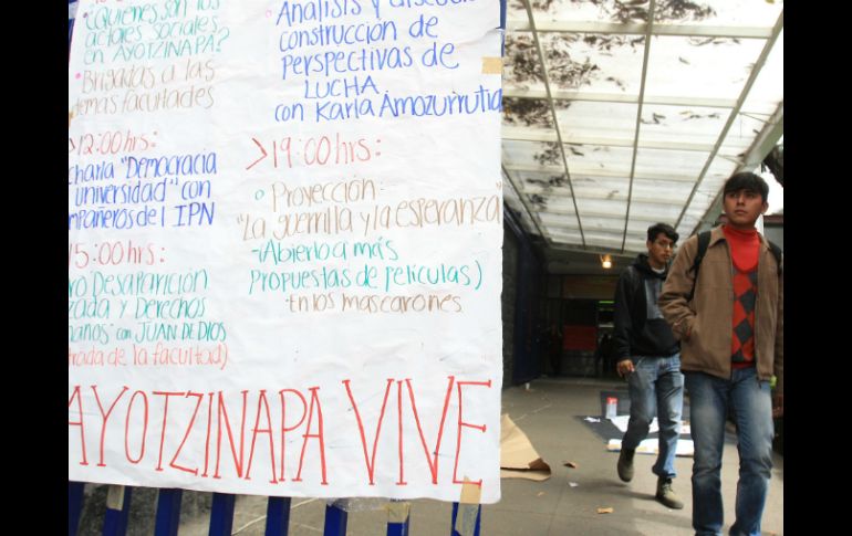 México | Los jóvenes en asambleas decidieron cerrar escuelas en apoyo a los normalistas Los estudiantes marcharán del Ángel al Zócalo Los jóvenes en asambleas decidieron cerrar escuelas en apoyo a los normalistas Por: SUN 15 de octubre de 2014 - 09:38 hs Algunas facultades de la Ciudad de México colocaron mantas en las entradas de los edificios por paro de clases. EFE / M. Guzmán CIUDAD DE MÉXICO (14/OCT/2014).- Estudiantes de distintas casas de estudios realizarán una marcha a las 18:00 horas del Ángel de la Independencia al Zócalo, según informó el Centro de Atención a Emergencias y Protección Ciudadana de la Ciudad de México. Por su parte, la Secretaría de Seguridad Pública del Distrito Federal (SSP-DF) informó que se prevé concentración frente a la biblioteca central de Ciudad Universitaria en avenida Universidad #3000 a las 11:00 horas. De igual forma, hay concentraciones de alumnos afuera de las Preparatorias 5, 6, 8 y 9 de la Universidad Nacional Autónoma de México (UNAM). - Paro estudiantil Ayer martes, estudiantes de las Facultades de Estudios Superiores (FES) Acatlán y Cuautitlán, así como del CCH Naucalpan decidieron en asambleas cerrar estas escuelas de la UNAM, ubicadas en el Estado de México, en apoyo a los normalistas de Ayotzinapa, Guerrero. Jóvenes de la Facultad de Filosofía y Letras o la de Ciencias Políticas y Sociales colocaron mantas en las entradas de los edificios para impedir que haya clases. Planteles como el CCH Azcapotzalco, CCH Sur, ENP 2, ENP 3, Escuela Nacional de Trabajo Social, Facultad de Arquitectura, Facultad de Ciencias, Facultad de Ingeniería, Facultad de Psicología, Facultad de Química, FES Aragón, FES Zaragoza, también se sumaron al paro en favor de los normalistas. Temas UNAM Estados Distrito Federal Ciudad de México Manifestaciones en la Cd. de México Estudiantes Recibe las últimas noticias en tu e-mail Todo lo que necesitas saber para comenzar tu día Registrarse implica aceptar los Términos y Condiciones
