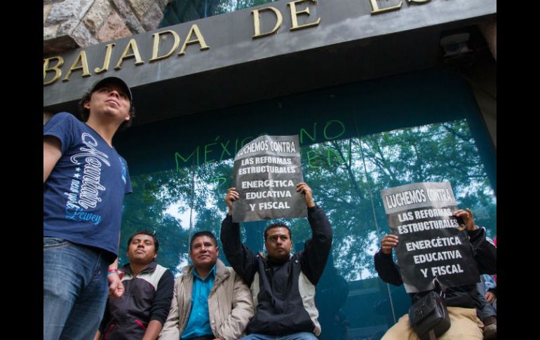 México | Disidentes de Oaxaca llegan a la sede española para dar 'los pormenores de su lucha' Maestros bloquean embajadas como protesta contra reforma educativa Disidentes de Oaxaca llegan a la sede española para dar 'los pormenores de su lucha' Por: EFE 27 de agosto de 2013 - 09:56 hs Las embajadas de España, EU y Francia operan este lunes con normalidad a pesar de los plantones establecidos por la CNTE. NTX / CIUDAD DE MÉXICO (27/AGO/2013).- Cientos de maestros disidentes cercaron hoy varias embajadas en Ciudad de México para pedir a legisladores y al Gobierno federal que tengan en cuenta sus propuestas en las leyes reglamentarias de la reforma educativa. "Esta paralización del país se pudo haber evitado pero el Gobierno no nos escuchó a tiempo y no nos dejó otra alternativa que movilizar masivamente a las bases", dijo la profesora de secundaria e integrante de la sección 22 de la Coordinadora Nacional de Trabajadores de la Educación (CNTE), Isabel Dávila Ribera, frente a la embajada de España. Los maestros, que también bloquearon las embajadas de Estados Unidos y de Francia en la capital mexicana, se trasladaron a las sedes diplomáticas para exigir que se tenga en cuenta su opinión. Dávila anunció que las actividades de "lucha" se irán modificando conforme avancen las negociaciones que la dirigencia de la CNTE mantendrá con la Junta de Coordinación Política de la Cámara de Diputados. A la embajada de España llegaron maestros pertenecientes de las regiones de La Cañada, La Sierra y la Mixtaca, del sureño estado de Oaxaca, quienes reconocieron que "paralizaron las actividades pedagógicas" para hacer patente su rechazo a las leyes que están tramitando la Cámara de Diputados y Senado. Allí hablaron varios oradores y los manifestantes colgaron carteles para dar a conocer "los pormenores" de su "lucha" y explicar el motivo por el que están movilizados. Alrededor de las 14:30 hora local (19:30 GMT), los maestros abandonaron las inmediaciones de la embajada española. La Ley del Servicio Profesional Docente, una de las normas secundarias a la reforma educativa promulgada en febrero por el presidente Enrique Peña Nieto, establece la evaluación como el principal instrumento para el ingreso, permanencia y promoción de los maestros en plazas del sistema de educación pública. Por la noche se informó que la CNTE acordó con los coordinadores de varios partidos en la Cámara de Diputados instalar una mesa de diálogo para plantear propuestas concretas en torno a la reforma educativa. Después de casi tres horas de reunión entre maestros y líderes de las bancadas se acordó que al encuentro, programado para este martes a las 17:00 hora local (22:00 GMT) en un hotel de la capital, asistirán 14 diputados y siete senadores. Temas Estados Ciudad de México CNTE Manifestaciones en la Cd. de México Lee También Max Verstappen se lleva el Gran Premio de Estados Unidos GP de Estados Unidos • Momentos Destacados • F1 2025 Astros de Jalisco desafía al vigente campeón en la final de zona de la LNBP Buen Fin 2025: Consejos para hacer compras inteligentes Recibe las últimas noticias en tu e-mail Todo lo que necesitas saber para comenzar tu día Registrarse implica aceptar los Términos y Condiciones