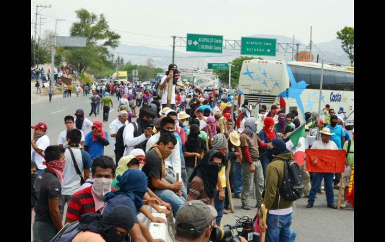 México | Profesores de la CNTE ocupan los cuatro carriles como parte de su protesta Maestros bloquean la Autopista del Sol Profesores de la CNTE ocupan los cuatro carriles como parte de su protesta Por: SUN 12 de octubre de 2015 - 14:03 hs CHILPANCINGO, GUERRERO (12/OCT/2015).- Maestros de la Coordinadora Estatal de Trabajadores de la Educación de Guerrero (CETEG) bloquean los cuatro carriles de la Autopista del Sol, a la altura del Parador del Marqués, al sur de la ciudad, como parte de sus acciones en contra de la reforma educativa. El grupo de maestros de la CETEG oficial, que dirige Ramos Reyes Guerrero, está colocado sobre los carriles de cobro, mientras docentes del grupo de que encabeza la integrante de la Comisión Política del magisterio disidente, Antonia Morales Vélez, tomaron tres oficinas de la Secretaría de Educación de Guerrero (SEG). Las oficinas tomadas son: la Subsecretaría de Educación Básica, el edificio "Juan N. Álvarez", donde está la Subsecretaría de Finanzas y las oficinas de la Subsecretaría de Planeación. En Iguala, los maestros de la CETEG y del Sindicato Nacional de Trabajadores de la Educación (SNTE) bloquearon casi dos horas totalmente la carretera federal México-Acapulco, a la altura del entronque con la carretera de cuota Iguala-Cuernavaca, para exigir la derogación de la reforma y cancelación a la evaluación universal. Luego los docentes marcharon e impidieron unos 15 minutos la entrada a Galerías Tamarindos, propiedad del ex alcalde de Iguala, José Luis Abarca, preso por la desaparición de los 43, entre otros delitos. Los inconformes pintaron frases como: “narcotienda” y “Nos faltan 43”. Después de esa actividad, maestros del Colegio de Bachilleres y del Sindicato Único de Servidores Públicos del Estado de Guerrero (SUSPEG) arribaron a la plaza de las Tres Garantías. Temas SNTE Estados Reforma Educativa Guerrero Manifestaciones en México Lee También SMN advierte: Tormenta Raymond dejará lluvias intensas y fuertes vientos en 4 estados Fallece influencer Fede Dorcaz en presunto intento de robo en la CDMX ¿Bad Bunny fuera del Super Bowl? Este sería el show alternativo Poza Rica, inundado por desbordamiento del río Cazones Recibe las últimas noticias en tu e-mail Todo lo que necesitas saber para comenzar tu día Registrarse implica aceptar los Términos y Condiciones