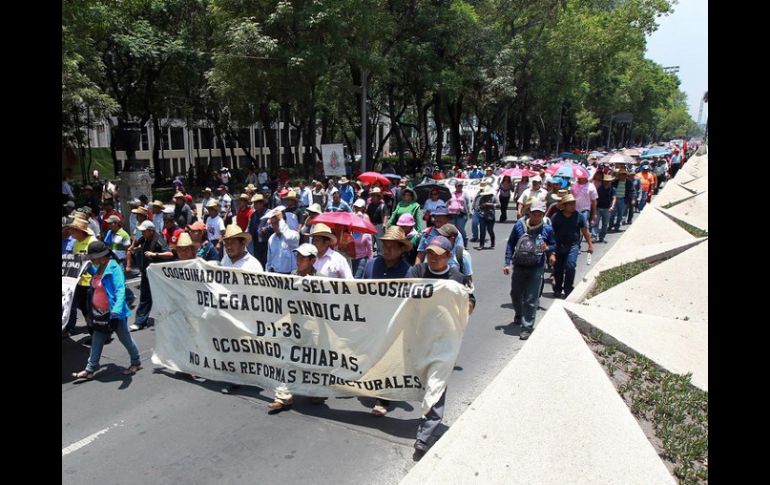 México | Provienen de 13 estados y se manifiestan contra la reforma educativa Maestros de la CNTE inician marcha a la Segob Provienen de 13 estados y se manifiestan contra la reforma educativa Por: EL INFORMADOR 4 de abril de 2013 - 09:23 hs La Sección 22 de Oaxaca encabeza la protesta. ARCHIVO / CIUDAD DE MÉXICO (04/ABR/2013).- Esta mañana maestros de la Coordinadora Nacional de Trabajadores de la Educación (CNTE) iniciaron en la Ciudad de México una marcha contra la reforma educativa. Tienen como destino la Secretaría de Gobernación (Segob). La Sección 22 de Oaxaca encabeza la protesta, a la que se suman los estados de Puebla, Guerrero, Tlaxcala, Veracruz, San Luis Potosí, Michoacán, Morelos, Zacatecas, Durango, Baja California Sur, Chiapas y el Distrito Federal. El contingente tomará la Calle de 5 de Mayo, Hidalgo, un tramo de Reforma y posteriormente Bucareli. De acuerdo con los primeros reportes, se trata de cuatro mil manifestantes, quienes aseguran que la reforma promueve la privatización de la educación y afecta sus plazas laborales. Ante dicha situación, elementos de la Secretaría de Seguridad Pública del Distrito Federal (SSPDF) aplican cortes a la circulación con el objetivo de evitar los denominados cuellos de botella. En las inmediaciones de la Secretaría de Gobernación personal de la Policía Federal instaló un cerco con vallas metálicas para prevenir cualquier incidente con motivo de la protesta de los manifestantes, quienes exigen una mesa de negociación para abrogar las modificaciones de los artículos 3 y 73 constitucionales. La SSPDF vigila el avance del contingente de la CNTE y hasta el momento no se reporta ningún incidente, salvo los problemas de circulación, por ello se recomienda a los automovilistas evitar la zona. Con información de Sinembargo.mx y NTX. Temas Estados Reforma Educativa Ciudad de México CNTE Manifestaciones en la Cd. de México Lee También Un lugar intermedio… Ni para la foto hubo acuerdo Reforma judicial, una historia que se enreda La "doble cara" de la política exterior Recibe las últimas noticias en tu e-mail Todo lo que necesitas saber para comenzar tu día Registrarse implica aceptar los Términos y Condiciones