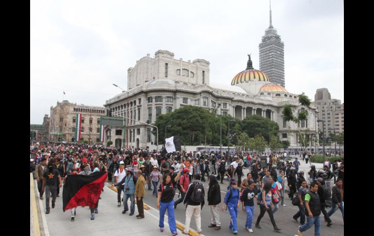 México | Los inconformes marchan en disitintos contingentes Maestros marchan a Televisa, Senado y el Ángel Un grupo de profesores se dirige a las instalaciones de Televisa, mientras que otro contingente marcha rumbo al senado de la República para bloquear Insurgentes y Reforma Por: SUN 19 de septiembre de 2013 - 12:09 hs Integrantes de la Coordinadora Nacional de Trabajadores de la Educación marchan cerca del Palacio de Bellas Artes. ARCHIVO / CIUDAD DE MÉXICO (19/SEP/2013).- Ante el desacuerdo de una sola movilización, maestros de la Coordinadora Nacional de Trabajadores de la Educación ( CNTE) iniciaron movilizaciones por separado. Un grupo de profesores se dirige a las instalaciones de Televisa, mientras que otro contingente marcha rumbo al senado de la República para bloquear Insurgentes y Reforma, en tanto que la sección 22 de Oaxaca permanecerá en Avenida Juárez hacia el Palacio de Bellas Artes. Los estudiantes de la UNAM marcharán sobre Paseo de la Reforma hasta el Ángel de la Independencia y de ahí avanzarán hacia Avenida Chapultepec, para caminar sobre Cuauhtémoc y regresar sobre Eje Central hasta Bellas Artes. Temas Estados CNTE Manifestaciones en la Cd. de México Recibe las últimas noticias en tu e-mail Todo lo que necesitas saber para comenzar tu día Registrarse implica aceptar los Términos y Condiciones