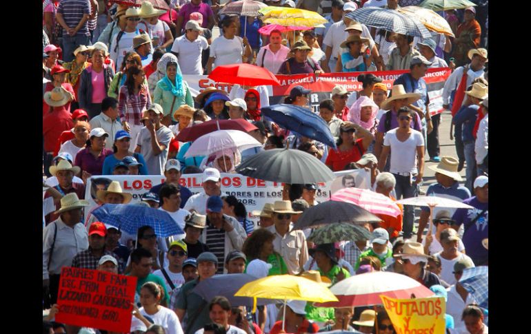México | El gremio disidente se dirige hacia el Zócalo de Chilpancingo Maestros marchan de nueva cuenta sobre Autopista del Sol Previamente, elementos de la Policía Federal, a bordo de patrullas, realizaban labores de vigilancia sobre la autopista hacia Acapulco Por: SUN 10 de abril de 2013 - 12:05 hs Integrantes de la CETEG avanzan sobre la Autopista del Sol rumbo al Palacio de Gobierno. SUN / CHILPANCINGO, GUERRERO (10/ABR/2013).- La marcha de los integrantes de la Coordinadora Estatal de Trabajadores de la Educación de Guerrero (CETEG), acompañados por padres de familia, normalistas y organizaciones sociales, avanzaba hacia el Zócalo de esta capital, sobre la Autopista del Sol, dirección Sur-Norte, rumbo a la Ciudad de México, sobre los carriles centrales. La manifestación tomó esta vía de comunicación federal a la altura del boulevard Vicente Guerrero, luego de pasar por las inmediaciones del Congreso estatal. La vanguardia está encabezada por organizaciones como el Comité Regional de Defensoría de Derechos Humanos, el Frente de Defensa de Derechos Populares, la Unión Popular de Preparatorias, egresados normalistas, entre otros, así como representantes de la Coordinadora Regional de Autoridades Comunitarias (CRAC)- policías comunitarias-. Previamente, elementos de la Policía Federal, a bordo de patrullas, realizaban labores de vigilancia sobre la autopista hacia Acapulco. Maestros estiman en 50 mil el número de manifestantes en Guerrero Debido a la megamarcha de los maestros disidentes de Guerrero, el carril central dirección Chilpancingo-Acapulco de la Autopista del Sol fue habilitado en sentido contrario; el contingente avanzaba con dirección Sur-Norte (Chilpancingo-Distrito Federal) bloqueando la vialidad. De acuerdo con información de la Coordinadora Estatal de Trabajadores de la Educación de Guerrero (CETEG), el grueso del contingente de la marcha está integrado por "más de 50 mil personas". Entre las consignas los manifestantes las siguientes: "¡Aguirre traidor, golpeaste al profesor!" y "los padres de familia honestos están con los maestros". Durante su recorrido algunos padres de familia reparten agua embotellada y naranjas a los manifestantes. Se prevé que el contingente de la CETEG avance hacia el Zócalo de Chilpancingo. Temas Estados Guerrero Conflicto Magisterial Lee También Angelina Jolie planea dejar EU por diferencias con gobierno de Trump Trump dijo merecer Nobel de la Paz por haber "terminado con siete guerras" ¿Trump ganaría el Nobel de la Paz? Veteranos del Comité de premiación responden Netanyahu fija plazo para el alto al fuego tras plan de paz para Gaza Recibe las últimas noticias en tu e-mail Todo lo que necesitas saber para comenzar tu día Registrarse implica aceptar los Términos y Condiciones