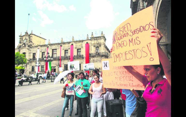 México | Docentes externan su inconformidad con la reforma educativa Maestros paristas dejan sin clases a 203 escuelas Guadalajara, Zapopan y Tlajomulco están entre los municipios donde niños y jóvenes resultaron afectados por la ausencia de docentes Por: EL INFORMADOR 12 de septiembre de 2013 - 01:10 hs Integrantes del Movimiento de Bases Magisteriales portaron carteles con consignas de protesta contra la reforma educativa. EL INFORMADOR / GUADALAJARA, JALISCO (12/SEP/2013).- La Secretaría de Educación Jalisco (SEJ) confirmó que las escuelas en las que no se laboró ayer fueron 203: 20 preescolares, 150 primarias, 30 secundarias y tres escuelas normales. Los planteles educativos públicos de educación básica en la Entidad son 11 mil 243. La Asamblea Magisterial Democrática había convocado desde el sábado a los docentes de la Entidad a unirse al paro nacional. Éste consistió en Jalisco en suspender la labor docente con los alumnos, para reunirse con padres de familia e informarles los alcances de la reforma educativa e incluso también de la energética. Los planteles en los que no se trabajó están ubicados, algunos, en Guadalajara, Zapopan, Tlajomulco, La Barca, Tomatlán, Puerto Vallarta, Ciudad Guzmán, Zapotiltic, Gómez Farías y Sayula, informó la SEJ. Juan Carlos Banderas, del Movimiento de Bases Magisteriales, dijo que el sábado habrá una reunión para acordar cuáles son las siguientes acciones a seguir, para protestar por la Reforma Educativa. Ayer, de forma inesperada, hicieron un mitin en Plaza de Armas. También el sábado maestros adscritos al Sindicato Nacional de Trabajadores de la Educación (SNTE) plantean acudir al edificio de la Sección 47 para encarar al secretario general Miguel Rodríguez Noriega, quien ayer no los atendió. Lo acusan de no “defender” los derechos de los profesores. Ayer, unos 180 maestros, cálculo de la Policía de Guadalajara, que permanecían afuera de la Torre de Educación en Alcalde, emprendieron camino a pie por los dos carriles centrales de la transitada avenida, a las 11:38, al edificio de la Sección 47, para reclamar a la dirigencia que no diga “la verdad” sobre los alcances de la Reforma Educativa. Durante las últimas semanas, en la Entidad se han inconformado por la Reforma Educativa, en la calle y ruedas de prensa, miembros y simpatizantes del Movimiento de Bases Magisteriales, del Colectivo Magisterial Democrático, Sindicato Único de Académicos del Colegio de Bachilleres de Jalisco, Movimiento del Magisterio Independiente del Sur, Red Magisterial del Sur y Movimiento de Telesecundarias, quienes se adhirieron a la Asamblea Magisterial Democrática. El domingo 1 de septiembre se sumaron a la disconformidad los miembros del llamado Movimiento por la Defensa de los Trabajadores de la Educación, impulsado por ocho miembros del Comité Ejecutivo de la Sección 47 del SNTE y que ayer marcharon hacia su edificio sindical para protestar por el actuar de su dirigencia. Por un acuerdo con el SNTE —publicado en un desplegado ayer— el Gobierno de Jalisco promete recibir y analizar las propuestas de los titulares de los Comités Ejecutivos Seccionales del Sindicato, derivadas de opiniones y piensos de los agremiados, para dar “viabilidad” a la reforma y su normativa. “En Jalisco tenemos una situación de algunos maestros inconformes con la ley. Creo que nos hace falta socializar e informar los alcances de la ley. Quiero dejar muy claro que no habrá ningún solo despido en el Estado ni en el país por la Reforma Educativa”, afirmó al respecto el secretario de Educación en Jalisco, Francisco Ayón López. FRASE"Esta, nuestra casa (Sección 47), que nos defendía, la han derrumbado (...) No entreguen a los maestros de Jalisco "Juan Ernesto Navarro, director encargado de la secundaria 62 de Zapotlanejo. MENTORES DISIDENTES OCASIONAN CAOS EN UNA DECENA DE CAPITALESLa CNTE acuerda nueva reunión con GobernaciónCIUDAD DE MÉXICO.- Los maestros disidentes mostraron músculo contra la Reforma Educativa y de paso desquiciaron varias capitales estatales así como la Ciudad de México. Sobre las 18:00 horas la Coordinadora Nacional de Trabajadores de la Educación (CNTE) informó que hoy sostendrá una reunión con el titular de Gobernación, Miguel Ángel Osorio Chong. En la marcha participan profesores de Oaxaca, Michoacán, Distrito Federal, Estado de México, Guerrero, Veracruz, Yucatán, así como contingentes de organizaciones como el Sindicato Mexicano de Electricistas, estudiantes del Colegio de Ciencias y Humanidades y otros de nivel superior de la UNAM. Tras salir de la reunión que sostuvieron con el subsecretario de Gobernación, Luis Miranda, en la Residencia Oficial de Los Pinos, Rubén Núñez dijo que los líderes magisteriales serán recibidos hoy por el funcionario federal a las 11:00 horas. Gonzalo Martínez Villagrán, de la sección novena del Distrito Federal, informó que otro de los acuerdos con el Gobierno federal fue la entrega de un vehículo con el equipo de sonido que, aseguró, fue decomisado por la Policía capitalina cuando los profesores se dirigían a bloquear el Periférico. El magisterio disidente se agrupó en torno a la glorieta de la Diana Cazadora para emprender su retirada rumbo al Zócalo capitalino. Acusó al Gobierno federal de enviar a “funcionarios de tercer y cuarto nivel” de Los Pinos para recibirlos, lo que ocasionó la molestia de los maestros. Ante esta situación, dos contingentes de la Coordinadora intentaron bloquear Anillo Periférico y Paseo de la Reforma, dos arterias principales de la Ciudad de México, lo que originó el arribo de elementos de la Secretaria de Seguridad Pública del DF, lo que culminó con enfrentamientos. En su retiro, los docentes se enfrentaron a palos y piedras con granaderos. El segundo percance tuvo lugar sobre la lateral de Reforma a la altura de la Torre Mayor. Previamente se había registrado otro conflicto sobre Reforma y