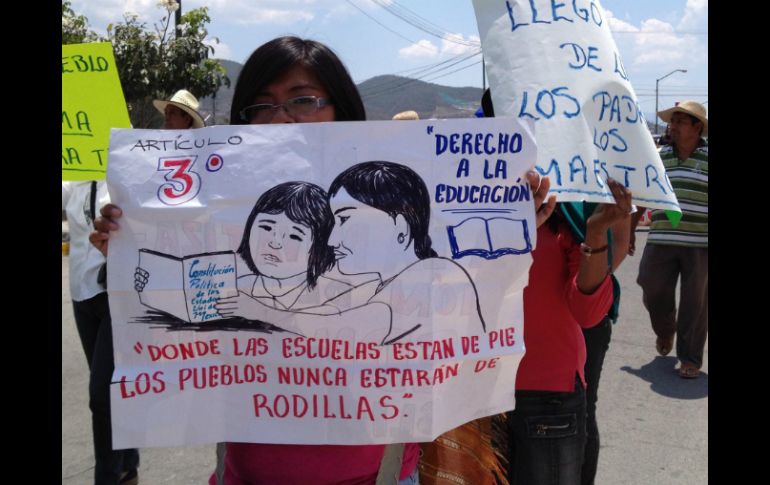 México | Profesores de la CETEG cerraron los dos principales accesos al recinto Maestros protestan en Palacio de Gobierno de Guerrero Profesores de la CETEG cerraron los dos principales accesos al recinto Por: SUN 2 de junio de 2015 - 13:46 hs A la protesta en el Palacio de Gobierno llegaron los padres de familia de los 43 normalistas. NTX / ARCHIVO CHILPANCINGO, GUERRERO (02/JUN/2015).- Maestros de la Coordinadora Estatal de Trabajadores de la Educación de Guerrero (CETEG), protestaron en el Palacio de Gobierno, donde cerraron los dos principales accesos del recinto gubernamental. Los docentes exigieron al gobierno estatal garantías para que 70 integrantes del magisterio disidente que se encuentran "refugiados" en la Normal Regional de Tlapa, no sean agredidos por un "grupo de choque" que presuntamente los tiene sitiados. Un grupo de unos 100 profesores de la CETEG realizó pintas con las leyendas: "Nos faltan 43" y "No a las elecciones". Carlos Botello Barrera, de la Comisión Política de la Coordinadora en la zona centro, solicitó al gobernador del estado, Rogelio Ortega, que brinde las garantías suficientes a los maestros para evitar más violencia, porque dijo que en varias comunidades de la región de Tlapa se estaban organizando para ir en auxilio de sus 70 compañeros. Explicó que luego de la irrupción de un grupo que denominó de "choque", presuntamente organizado por el ex edil de Tlapa, Victoriano Wences, el grupo los acorraló y los obligó a abandonar el ayuntamiento a base de pedradas y amenazas verbales. A la protesta en el Palacio de Gobierno llegaron los padres de familia de los 43 normalistas desaparecidos de Ayotzinapa, quienes, de acuerdo con el vocero, Felipe de la Cruz, respaldan las acciones ocurridas anoche en Tlapa, donde fueron quemadas más de 116 mil boletas para la elección de gobernador, alcaldes y diputados locales del distrito 28. "No tenemos miedo de la cárcel porque es más delito desaparecer a 43 jóvenes, asesinar gente y reprimir movimientos, que detener una elección que se traduce en la legitimidad de políticos corruptos que avalaron los hechos violentos del 26 de septiembre de 2014", afirmó. Carlos Botello por su parte aseguró que estas acciones no van a terminar hasta que impidan la elección del 7 de junio; "por más que nos agredan no se va a terminar nuestro plan de acción, va a continuar". Y anunció que el 5 de este mes, en Chilpancingo habrá una gran concentración. Temas Estados Guerrero Manifestaciones en México Lee También Sheinbaum descarta riesgo por crecimiento del río Pánuco en Tamaulipas Jugadores de LaLiga se manifiestan contra el partido en Miami México vs Corea del Sur: EN VIVO, dónde ver el partido por el Mundial Sub-17 femenil Protestan contra Trump en Estados Unidos Recibe las últimas noticias en tu e-mail Todo lo que necesitas saber para comenzar tu día Registrarse implica aceptar los Términos y Condiciones