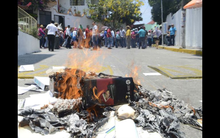México | Se trata de notificaciones para que declaren por qué no se han presentado a laborar Maestros queman notificaciones en Guerrero Se trata de notificaciones para que se presenten a declarar por qué no se han presentado a laborar Por: SUN 20 de mayo de 2016 - 12:57 hs CHILPANCINGO, GUERRERO (20/MAY/2016).- Maestros de la Coordinadora Estatal de Trabajadores de la Educación de Guerrero (CETEG) sustrajeron cerca de 100 sobres de las oficinas de Correos de México en Chilpancingo y los quemaron en el zócalo de esta capital guerrerense. De acuerdo con los docentes, se trata de notificaciones para que se presenten a declarar o a justificar por qué no se han presentado a laborar en sus diferentes escuelas. Los miembros de la CETEG, de la fracción de la profesora Antonia Morales, dijeron que procedieron a quemar las notificaciones para evitar una sanción mayor. Adicionalmente, los docentes cerraron dos sucursales bancarias pues acusaron que éstas están con el gobierno para aplicar los descuentos al magisterio. En entrevista posterior, Morales dijo que son más de 120 maestros los que están en paro, pero no dejarán que ninguno de ellos sea despedido. Temas Estados Reforma Educativa Guerrero Manifestaciones en México Lee También "Sonia" SUBE potencia; así se desplazaría por México "La Mañanera" de Sheinbaum de hoy miércoles 15 de octubre de 2025 La aristocracia del Bienestar Fortalecen puentes Recibe las últimas noticias en tu e-mail Todo lo que necesitas saber para comenzar tu día Registrarse implica aceptar los Términos y Condiciones