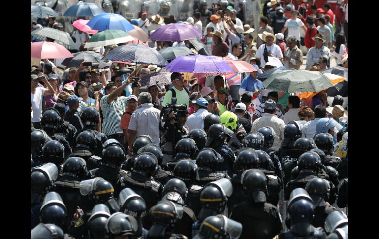 México | Miembros de la CNTE marcharon ante Televisa Chapultepec para exigir espacio mediático Maestros regresan a su plantón en el DF tras protesta Miembros de la CNTE marcharon en las afueras de Televisa Chapultepec para exigir espacio mediático en dicho medio Por: SUN 13 de junio de 2015 - 14:24 hs Los profesores celebraron haber burlado el cerco policíaco y haber hecho correr a los oficiales. EFE / ARCHIVO CIUDAD DE MÉXICO (13/JUN/2015).- Miembros de la Coordinadora Nacional de Trabajadores de la Educación (CNTE) arribaron a su campamento instalado en el Monumento a la Revolución, luego de que la marcha se retiró de las afueras de Televisa Chapultepec para exigir espacio mediático en dicho medio de comunicación. Durante el regreso, la marcha burló el cerco que los policías de tránsito y granaderos quienes pretendían impedir que la manifestación circulara por avenida Insurgentes. La CNTE avanzaba sobre avenida Chapultepec escoltados por más de mil uniformados cuando los desviaron por la calle de Nápoles para evitar que llegaran a la glorieta de Insurgentes y salir de manera directa a avenida Paseo de la Reforma. No obstante, los policías se adelantaron en su paso y dejaron libre la camioneta de la CNTE que encabezaba la marcha, momento en que aprovecharon tomar la calle de Liverpool y salir a Insurgentes. Al cruce de esta avenida, una de las más importantes del país, algunos agentes llegaron corriendo para impedir el paso. Un granadero se plantó con su escudo frente a la camioneta que avanzó hasta quedar pegado al policía, quien segundos después recibió órdenes de retirarse y dejarlos pasar. Desde el altavoz se celebraba haber burlado el cerco policíaco y haber hecho correr a los oficiales. Temas Estados Ciudad de México CNTE Manifestaciones en la Cd. de México Recibe las últimas noticias en tu e-mail Todo lo que necesitas saber para comenzar tu día Registrarse implica aceptar los Términos y Condiciones