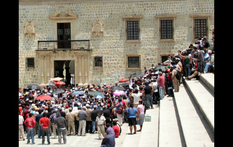 México | También toman las oficinas de un grupo radiofónico del centro de la ciudad Maestros vandalizan sede del PRI en Oaxaca También toman las oficinas de un grupo radiofónico del centro de la ciudad Por: SUN 28 de junio de 2013 - 15:11 hs Maestros y activistas marchan con rumbo al zócalo de la ciudad para realizar un mitin y quemar propaganda electoral. NTX / OAXACA, OAXACA (28/JUN/2013).- Durante su marcha al zócalo de la ciudad, maestros realizaron una serie de pintas en la sede estatal del Partido Revolucionario Institucional (PRI), impidieron el trabajo de una reportera gráfica de la entidad y tomaron las oficinas de un grupo radiofónico en el centro de la ciudad. En su movilización en la capital, así como en los 37 sectores del estado, denominada "De pies cansados", los mentores bloquearon una serie de vialidades y retiraron la propaganda electoral de los partidos políticos, principalmente de los que firmaron el “Pacto por México”. Mientras tanto, en el centro de la ciudad, integrantes de la Asamblea Popular de los Pueblos de Oaxaca colocaron puestos para expender productos artesanales. Además, los docentes aseguraron que estas actividades se realizan en el marco de las negociaciones que mantienen con las autoridades educativas para dar solución a su pliego de demandas de 59 puntos, entre las que destacan la derogación de la reforma educativa, la contratación de decenas de profesores y las mejoras a la infraestructura educativa del estado. En el istmo de Tehuantepec, los inconformes han iniciado la quema de la propaganda política de los candidatos a presidentes municipales. En tanto, se prevé que en breve los maestros y activistas arriben al zócalo de la ciudad para participar en un mitin. Temas PRI Estados Oaxaca Manifestaciones en México Recibe las últimas noticias en tu e-mail Todo lo que necesitas saber para comenzar tu día Registrarse implica aceptar los Términos y Condiciones