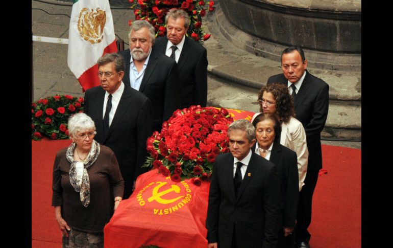 México | Al evento acuden Jesús Zambrano y Alejandro Encinas Mancera encabeza homenaje póstumo a Arnoldo Martínez El féretro de Martínez Verdugo es recibido con aplausos por dirigentes del PRD y ex compañeros del Partido Socialista Por: NTX 25 de mayo de 2013 - 17:12 hs Miguel Ángel Mancera encabeza el homenaje a Arnoldo Martínez que se celebra en el Museo de la Ciudad de México. NTX / CIUDAD DE MÉXICO (25/MAY/2013).- El jefe de Gobierno del Distrito Federal, Miguel Ángel Mancera, encabezó el homenaje póstumo al dirigente histórico de la izquierda, Arnoldo Martínez Verdugo, que se celebró en el Museo de la Ciudad de México. El féretro fue recibido con aplausos, entre ellos de ex compañeros del Partido Socialista y dirigentes del Partido de la Revolución Democrática (PRD). Entre los presentes estaban el líder nacional del Partido de la Revolución Democrática (PRD), Jesús Zambrano, el senador Alejandro Encinas, dirigentes históricos del movimiento de 1968 como Raúl Álvarez Garín, y familiares del luchador social. También montaron guardia de honor, junto con Mancera Espinosa, Ifigenia Martínez, la actual delegada en Tlalpan, Marisela Contreras, así como la compañera del fallecido dirigente Martha Recasens. Sobre el féretro del ex líder de las izquierdas, quien murió la víspera a los 88 años de edad, fue colocada una bandera roja del Partido Socialista Unificado de México. Temas PRD Política Homenaje Miguel Ángel Mancera Recibe las últimas noticias en tu e-mail Todo lo que necesitas saber para comenzar tu día Registrarse implica aceptar los Términos y Condiciones