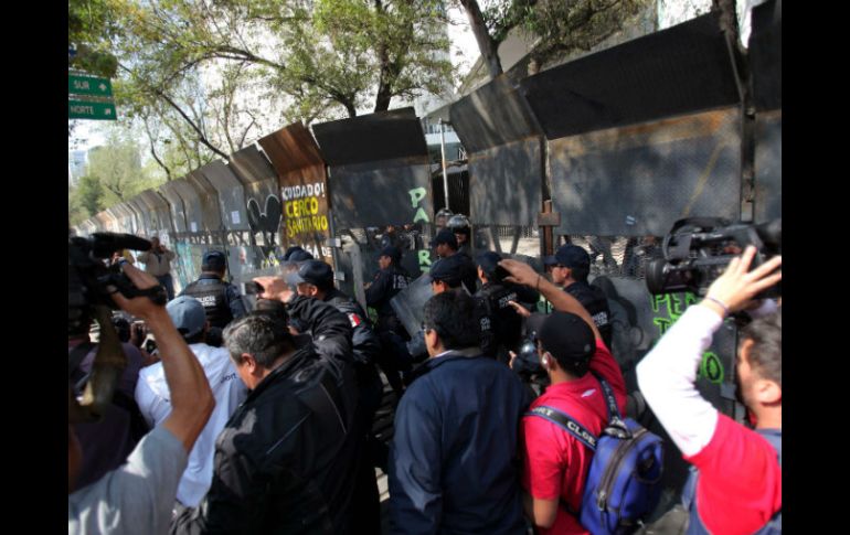 México | Logran romper el cerco de seguridad instalado por la policía Manifestantes tiran vallas en el Senado Logran romper el cerco de seguridad instalado por la policía Por: SUN 5 de diciembre de 2013 - 11:32 hs Tres vallas de alta resistencia colocadas en las inmediaciones del Senado fueron derribadas, luego de unos minutos, la calma volvió. SUN / CIUDAD DE MÉXICO (05/DIC/2013).- Miembros de la Coordinadora Nacional de Trabajadores de la Educación ( CNTE) llegaron al cerco que se realiza en el Senado, por parte de miembros del Movimiento de Regeneración Nacional ( Morena), en donde tiraron las vallas de alta resistencia que se habían colocado. La Secretaría de Seguridad Pública del Distrito Federal (SSP-DF) realiza cortes a la circulación en avenida Paseo de la Reforma, desde la glorieta de Colón hasta el Ángel de la Independencia, debido a las manifestaciones. Previo, los maestros realizaron una protesta afuera de la embajada de Estados Unidos en México. Desde ese punto se trasladaron sobre Reforma a la Cámara alta. El cerco en el Senado se realiza en el marco de la discusión de la reforma energética. Temas Reforma Energética Política Cámara de Senadores CNTE Manifestaciones en la Cd. de México Morena (Partido político) Recibe las últimas noticias en tu e-mail Todo lo que necesitas saber para comenzar tu día Registrarse implica aceptar los Términos y Condiciones