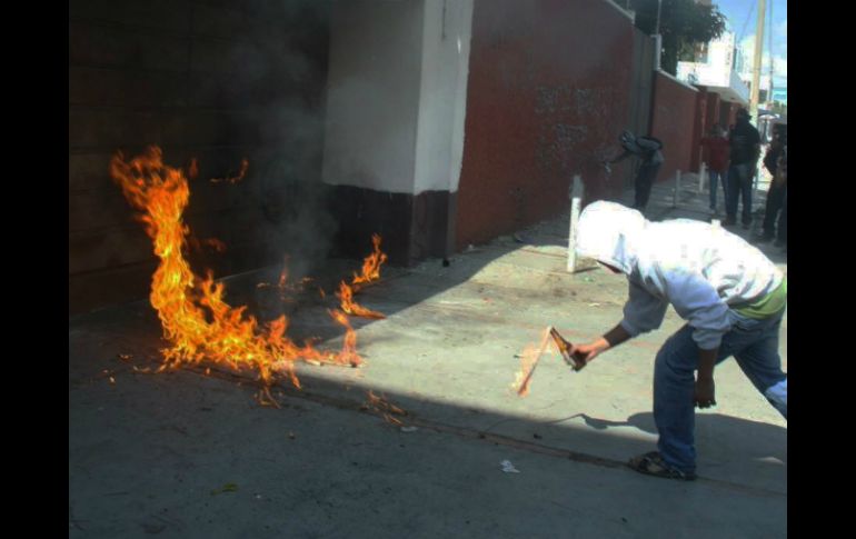 México | Autoridades informan que algunos individuos lanzaron bombas molotov al edificio Manifestantes vandalizan sede del PRI en Oaxaca Autoridades informan que algunos individuos lanzaron bombas molotov a la puerta del edificio Por: NTX 17 de noviembre de 2014 - 18:16 hs Un joven intenta incendiar la puerta de las instalaciones del PRI en Oaxaca. EFE / OAXACA, OAXACA (17/NOV/2014).- Una caravana de normalistas y familiares de estudiantes desaparecidos en Iguala, Guerrero, concluyó aquí su movilización con incidentes menores y sólo algunos sujetos lanzaron bombas Molotov a la puerta de la sede del PRI, informaron las autoridades. En un comunicado, la Secretaría de Seguridad Pública de Oaxaca (SSPO) indicó que algunos de los que integraron la movilización lanzaron bombas Molotov al edificio del Partido Revolucionario Institucional (PRI) en Santa Rosa y lesionaron a un reportero gráfico. El paso de la caravana por Oaxaca concluyó en general con "saldo blanco" y el fotógrafo lesionado fue atendido de inmediato por personal del Heroico Cuerpo de Bomberos. Informó que tras el incidente ocurrido en el acceso del edificio del PRI, la Agencia Municipal de Santa Rosa tiene identificados a cuatro individuos quienes portaban pasamontañas, y lanzaron bombas Molotov contra las puertas del recinto. "Se cuenta con fotografías y videos de los responsables del reprobable acto, captados desde el puesto de mando del Centro de Control, Comando y Comunicación (C4), por lo que ya se inició una investigación para dar con los responsables del hecho", señaló. Explicó que desde el pasado domingo la SSPO contactó a los dirigentes partidistas, para implementar una estrategia de seguridad y evitar daños al personal y al inmueble. Indicó que con tiempo a la anunciada movilización, la dependencia emitió las recomendaciones pertinentes para prevenir a negociaciones, organizaciones y propietarios de inmuebles particulares ubicados en el trayecto del contingente, para evitar daños mayores. Durante la manifestación, elementos de la Policía Vial agilizaron el tránsito mediante el par vial implementado sobre la Carretera Internacional tramo Santa Rosa-Brenamiel, con lo que se evitó congestionamientos en la zona. Provenientes del estado de Chiapas, la caravana arribó la madrugada de este lunes para continuar su camino hacia el estado de Morelos, donde han contado durante todo Temas PRI Estados Oaxaca Guerrero Manifestaciones en México Lee También ¿Cuánto cuestan y dónde comprar boletos para el México vs Ecuador? Estos son los centros de acopio en CDMX para apoyar a damnificados por lluvias Avalan nueva Ley Orgánica de la Armada de México México vs Ecuador: ¿Quién ganará el partido según la IA? Recibe las últimas noticias en tu e-mail Todo lo que necesitas saber para comenzar tu día Registrarse implica aceptar los Términos y Condiciones