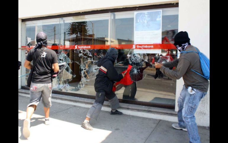México | Se registran afectaciones a empresas trasnacionales y detonaciones de armas de fuego Marcha en Oaxaca termina en gresca; hay 25 detenidos Se registran afectaciones a empresas trasnacionales y detonaciones de armas de fuego Por: SUN 1 de mayo de 2013 - 14:42 hs Un grupo de jóvenes ataca un banco en medio de las marchas por el Día del Trabajo. NTX / OAXACA, OAXACA (01/MAY/2013).- Al menos 25 detenidos, afectaciones a empresas trasnacionales, un conato de bronca y detonaciones de arma de fuego, es el saldo que arrojó la marcha de los maestros para conmemorar el Día del Trabajo, en Oaxaca. Minutos después de las 11:00 am, la caminata, en donde participaron el 10 por ciento de los 70 mil agremiados, partió del crucero del Instituto Estatal de Educación Pública de Oaxaca (IEEPO), con destino al zócalo de la ciudad para concluir su jornada con un mitin. Sin embargo, y de acuerdo a los participantes de esta movilización, un grupo de jóvenes se infiltró al contingente de los cerca de siete mil mentores. Lo anterior generó la molestia de los integrantes de la Sección debido a que este grupo denominados "anarcopunks" pintaron paredes y arremetieron contra la empresa Mc Donald's, lanzando piedras y provocando pánico entre los que se encontraban en el lugar. Después los jóvenes, quienes iban encapuchados, destrozaron cristales del Banco Scotiabank, ubicado sobre Héroes de Chapultepec esquina Heroico Colegio Militar. A pesar de que los maestros intentaron evitar esta situación, los "anarcopunks" remataron contra el restaurante Vip's de la Avenida Juárez del Llano, en donde se registró un conato de bronca entre maestros, integrantes del Frente Popular Revolucionario (FPR) y los jóvenes. Ante esta situación y en medio de una lluvia de palos y piedras, elementos de la policía municipal de Oaxaca arribaron al lugar de los hechos para detener por lo menos a 25 entre jóvenes, maestros e integrantes de organizaciones sociales. De acuerdo con el comisario de Seguridad Pública y Vialidad del Ayuntamiento de Oaxaca de Juárez, Cuahutémoc Zúñiga Bonilla, la detención responde a los actos de alteración del orden público, daños a empresas y comercios. Confirmó que a algunos de los arrestados se les encontró armas de fuego, por lo que se realizarán las investigaciones necesarias. Además de que también se indagará sobre las detonaciones de arma de fuego que se realizaron durante la gresca. Aunque el funcionario municipal aseguró que no se habían registrado lesionados, al menos dos policías fueron golpeados por un grupo de "anarcopunks" mientras trataban de calmar la situación. Debido a que eran rebasados por el número de jóvenes dispararon gases lacrimógenos, pero aún así fueron rebasados por los infiltrados. Luego de deslindarse de estos hechos, los mentores continuaron con su marcha para concluir con un mitin en el zócalo de la ciudad. Temas Estados Oaxaca Día del Trabajo Detenidos en México Lee También Día de Muertos: ¿Qué significan los huesitos y bolitas del pan de muerto? Reportan apertura de 335 caminos tras afectaciones por lluvias en cinco estados Actores de Hollywood que hablan español ¿Cómo el maximalismo ha impactado en la cultura mexicana? Recibe las últimas noticias en tu e-mail Todo lo que necesitas saber para comenzar tu día Registrarse implica aceptar los Términos y Condiciones