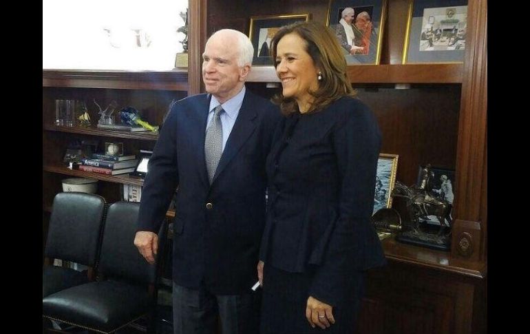 CIUDAD DE MÉXICO (06/MAR/2017).- En encuentro con el senador republicano John McCain, la aspirante a la candidatura presidencial del PAN, Margarita Zavala, habló de la importancia de proteger a nuestros connacionales en Estados Unidos, así como de la preocupación que existe en México por los mensajes en contra de los connacionales que radican en el país vecino.En respuesta, John McCain, señaló la importancia de mantener una buena relación entre México y Estados Unidos, por lo que expresó su interés por trabajar en áreas de entendimiento, además de refrendar su apoyo en la renegociación del Tratado de Libre Comercio (TLCAN), y de dialogar sobre el nuevo corredor I-11 que se construirá desde Nogales hasta Canadá.Ambos acordaron mantener un vínculo estrecho para seguir trabajando a favor de la relación bilateral entre las dos naciones, de acuerdo con un comunicado emitido por la panista.De gira por Washington, la esposa del ex presidente Felipe Calderón visitó el cementerio de Arlington, en donde dejó una ofrenda en la tumba del Soldado Desconocido.Desde ahí externó que la ofrenda es una manera de recordarle a Estados Unidos lo mucho que los mexicanos han hecho por la vida de esa nación, “muchos mexicanos e hijos de inmigrantes han ofrecido su vida por las libertades, el enriquecimiento y la defensa del pueblo estadounidense. Quizá es algo que no hemos señalado entre pueblos, pero es importante decirlo”, anotó.Como parte de su itinerario y siendo su primer día en el país vecino, acudirá a la Universidad George Washington, con la intención de reunirse con mujeres migrantes y estudiantes mexicanas de dicha institución.Para este martes tiene programada una entrevista en el Atlantic Council, con el ex ministro del interior Michael Chertoff, posteriormente se reunirá con el senador republicano Jeff Flake.Terminado el encuentro, Margarita Zavala dialogará con miembros representantes del congreso estadounidense de origen latino en el Hispanic Caucus y finalizará el día con un encuentro con miembros de AppleSeed.