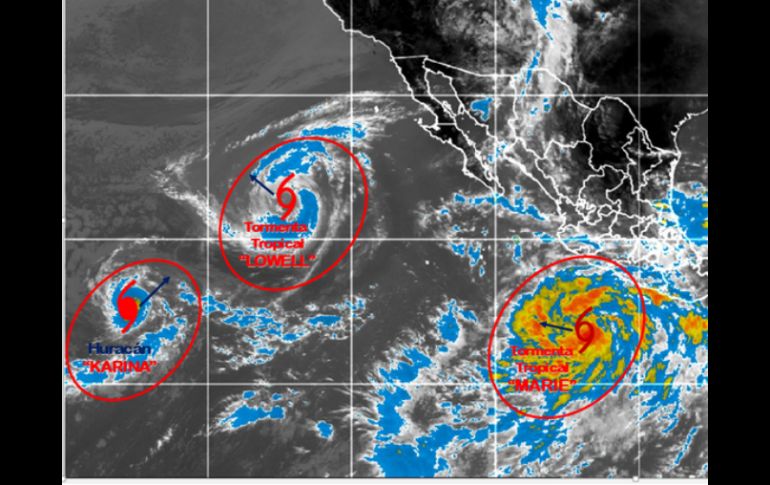 México | Jalisco, Oaxaca, Guerrero, Michoacán, Colima y Nayarit están cerca del meteoro 'Marie' provocará lluvias intensas en seis estados Los estados de Jalisco, Oaxaca, Guerrero, Michoacán, Colima y Nayarit se encuentran cerca del meteoro Por: NTX 22 de agosto de 2014 - 21:29 hs En el Océano Pacífico se encuentran actualmente tres meteoros, dos de ellos no afectan al país. TOMADA DE @conagua_clima / CIUDAD DE MÉXICO (22/AGO/2014).- El Sistema Nacional de Protección Civil alertó sobre la presencia de lluvias intensas en Jalisco, Oaxaca, Guerrero, Michoacán, Colima y Nayarit a consecuencia de la cercanía de la tormenta tropical “ Marie”. El coordinador nacional de Protección Civil, Luis Felipe Puente, informó que la tormenta tropical se posicionó la tarde de este viernes a 630 kilómetros al sur de Manzanillo, Colima, con una trayectoria oeste-noroeste. En conferencia de prensa indicó que esto ha ocasionado que se formen bandas nubosas sobre los estados mencionados, por lo que se emitieron boletines de alerta a las unidades locales de protección civil para que tomen las medidas de prevención correspondientes. Asimismo señaló que en el Océano Pacífico se encuentran el huracán “ Karina” y la tormenta tropical “ Lowell”, meteoros que hasta el momento no provocan afectaciones al territorio nacional. Luis Felipe Puente llamó a quienes tengan planeado viajar a esas entidades a estar alertas y a extremar precauciones, pues existen lluvias persistentes de acuerdo con información de la Comisión Nacional del Agua y de los gobiernos estatales. Además llamó al público en general a estar atento a las alertas del Sistema Nacional de Protección Civil y a las disposiciones de las autoridades locales en la materia. En los estados afectados no se descarta la presencia de deslaves, caída de granizo y afectaciones a las carreteras, concluyó. Temas Estados Clima Tormenta tropical Lluvias en el país Recibe las últimas noticias en tu e-mail Todo lo que necesitas saber para comenzar tu día Registrarse implica aceptar los Términos y Condiciones