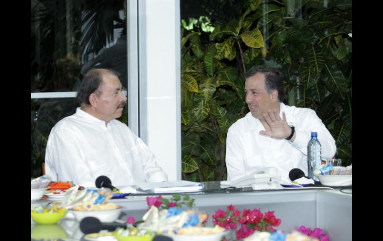 México | Recuerda que México busca fortalecer su relación con Centroamérica Meade es recibido por presidente de Nicaragua Recuerda que México busca fortalecer su relación con Centroamérica Por: SUN 23 de abril de 2014 - 20:30 hs Meade (d) resalta a Daniel Ortega (i) el crecimiento en el comercio bilateral en los últimos 15 años. TOMADA DE sre.gob.mx / CIUDAD DE MÉXICO (23/ABR/2014).- En el marco de su visita de trabajo a Nicaragua, el secretario de Relaciones Exteriores, José Antonio Meade, fue recibido por el presidente de ese país, Daniel Ortega. El canciller le recordó que México busca el fortalecimiento de su relación con Centroamérica, especialmente con esa nación y le reiteró el compromiso del Presidente Enrique Peña Nieto de otorgar "un fuerte impulso al diálogo bilateral". Según detalla la información proporcionada por la SRE, Meade manifestó al presidente Ortega la solidaridad del gobierno y pueblo de México ante los deslaves ocurridos recientemente en aquella nación. También recordó que en los últimos 15 años el comercio entre ambos países se ha incrementado, además de que en 2013 Nicaragua fue el tercer socio comercial de México en Centroamérica, con un intercambio superior a los mil 400 millones de dólares. La inversión mexicana acumulada en Nicaragua ascendió el año pasado a 762 millones de dólares, misma que representa el 18 por ciento de la inversión extranjera en ese país. En Nicaragua operan cerca de 30 empresas de origen mexicano. Temas SRE Política Nicaragua Daniel Ortega José Antonio Meade Lee También Portada: Dr. José Magaña, embajador de Arkana México Hamás dice que recibió garantías de que la guerra en Gaza terminó Esta es la última guerra que Trump resolvió, según él mismo KIVA Inversión inmobiliaria integral presenta Atriva, esencia viva Recibe las últimas noticias en tu e-mail Todo lo que necesitas saber para comenzar tu día Registrarse implica aceptar los Términos y Condiciones