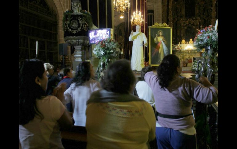 México | Cientos de personas se reunieron en la Catedral Metropolitana de la Ciudad de México Mexicanos celebran canonización de Juan Pablo II y Juan XXIII Cientos de personas se reunieron en la Catedral Metropolitana de la Ciudad de México Por: AFP 27 de abril de 2014 - 09:20 hs CIUDAD DE MÉXICO (27/ABR/2014).- Cientos de personas celebraron la canonización Juan Pablo II y Juan XXIII en la Catedral Metropolitana de la Ciudad de México con una velada de oración que comenzó la noche del sábado y se extendió hasta este domingo, de acuerdo con reportes de prensa. Con cánticos y alabanzas, los feligreses siguieron en pantallas gigantes la ceremonia del Vaticano, algunos de ellos con lágrimas, desde el interior del recinto religioso. Juan Pablo II visitó México en cinco ocasiones ganándose la empatía de millones de católicos. En al altar de la catedral fue colocada una estatua de Karol Wojtyla, famoso en este país por su lema "México siempre fiel". La celebración por la santificación de los pontífices concluirá este domingo con dos misas que se llevarán a cabo al mediodía, tanto en la catedral como en la Basílica de Guadalupe. El porcentaje de católicos en México cayó en la última década de 88 a 83.9% por ciento -casi 93 millones sobre un total de 112 millones de habitantes- admitió la arquidiócesis de México en un documento publicado en marzo de 2012 con motivo a la visita de Benedicto XVI. Temas Estados Iglesia Católica Ciudad de México Juan Pablo II Lee También Fallece influencer Fede Dorcaz en presunto intento de robo en la CDMX ¿Bad Bunny fuera del Super Bowl? Este sería el show alternativo Poza Rica, inundado por desbordamiento del río Cazones Bad Bunny permanece sentado durante "God Bless America" y enciende las redes Recibe las últimas noticias en tu e-mail Todo lo que necesitas saber para comenzar tu día Registrarse implica aceptar los Términos y Condiciones