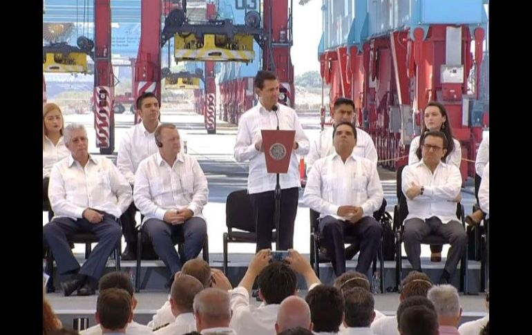 LÁZARO CÁRDENAS, MICHOACÁN (04/ABR/2017).- El Presidente Enrique Peña Nieto reafirmó la convicción de México en favor del libre comercio, la apertura y la construcción de puentes para unirse con otras regiones del mundo como el mecanismo que detone bienestar.Al inaugurar este martes la Terminal Especializada de Contenedores 2, que tuvo una inversión danesa de siete mil 500 millones de pesos, subrayó que su gobierno trabaja en lograr esa integración comercial en busca de mayor desarrollo para la sociedad.Acompañado por el primer ministro de Dinamarca, Lars Lokke Rasmussen, el Presidente hizo notar que en 2012 la capacidad portuaria del país estaba saturada por lo que se decidió desde el inicio de su mandato duplicar su capacidad."Por eso el gobierno de la República se propuso desde el inicio de esta administración ampliar la capacidad e nuestros puertos, y ampliarla de manera decidida, porque si estamos apostando por el libre comercio, por abrirnos más al mundo, porque los productos hechos en México puedan conquistar otras mercados y porque México sea un destino desde el cual puedan comerciarse Mercancías de otras partes del mundo, para México y particularmente América del Norte, teníamos que ampliar la capacidad de nuestros puertos", dijo.Hizo notar que la capacidad de los puertos mexicanos era de 260 millones de toneladas al año, por lo que su gobierno se propuso duplicar esa capacidad y llegar a por lo menos 500 millones de toneladas anuales.Agregó que actualmente México es el tercer país de América Latina con mayor manejo de contenedores con 5 millones anuales, detrás de Brasil con 9 millones y Panamá con 7 millones de contenedores."Pero llegar hoy a esa cifra de 5 millones de contenedores y lo que representa, más de 405 millones de toneladas de manejo al año, es precisamente por la ampliación que hemos hecho de nuestros puertos, es esa ruta que nos trazamos de duplicar nuestra capacidad", destacó.El Presidente comentó que si se pusieran los contenedores que maneja México, uno detrás de otro, equivaldría a colocarlos cuatro veces a lo largo de la frontera de México con los Estados Unidos.Tras subrayar que a la par de inaugurar esta Terminal de Contenedores ha inaugurado obras adicionales por 2 mil 600 millones de pesos para un total de 10 mil millones de pesos en favor del puerto de Lázaro Cárdenas.Dijo que esta obra se incluye dentro del proyecto de su gobierno para que México duplique su capacidad portuaria hacia 2018. Recordó que en 2012 los puertos mexicanos de México estaban saturados.Agregó que México, inserto en el mundo global y competido, tiene la firme convicción -al igual que Dinamarca- de estar abierto al mundo, de creer en el libre comercio y en la oportunidad que como nación tiene de acercarse a otros mercados y generar un círculo virtuoso que impulsa desarrollo, crecimiento y prosperidad.Hizo notar que el Puerto de Lázaro Cárdenas es un punto de conexión de los productos entre Asia y toda la Costa Oeste del Hemisferio de América Latina y con América del Norte, particularmente Estados Unidos."Lázaro Cárdenas es el puerto más cercano de la zona del Pacífico hacia el centro de los Estados Unidos. El puerto de Long Beach, en California, llegar ahí que también conecta con la zona asiática y la costa Oeste del Hemisferio, la distancia de ahí hacia al centro de Estados Unidos es mayor a la distancia que geográficamente y con conectividad tenemos desde el Puerto de Lázaro Cárdenas hacia el centro de Estados Unidos y hacia la parte Este de la Unión Americana", apuntó.