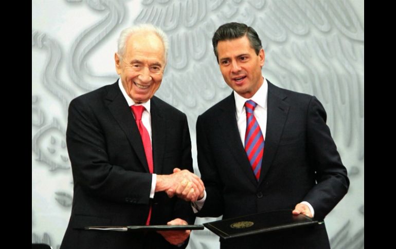México | Recibe el reconocimiento de Israel por la agenda de reformas que ha impulsado México tiene hoy un clima de mayor democracia: Peña Recibe el reconocimiento de Israel por la agenda de reformas que ha impulsado durante su administración Por: SUN 27 de noviembre de 2013 - 14:42 hs CIUDAD DE MÉXICO (27/NOV/2013).- Tras recibir el reconocimiento de Israel a la agenda de reformas que ha impulsado, el Presidente Enrique Peña Nieto sostuvo que México tiene hoy un clima de mayor democracia y participación política, de mayor acuerdo y consenso en favor de su desarrollo. Durante un mensaje a medios -que ofreció con el presidente de Israel, Shimon Peres-, el Mandatario dijo que muestra de lo anterior es la aprobación que realizó la víspera el Congreso de la unión de reformas en materia financiera y de transparencia gubernamental. En el Salón Adolfo López Mateos de la residencia de Los Pinos, el Presidente Peña Nieto subrayó que México es una nación de paz, un país fraterno, donde su mayor activo es su gente cálida, amable y hospitalaria. Al dar la bienvenida al mandatario israelí, el Presidente Peña definió a Peres como "un hombre de paz" y recordó que el visitante recibió el Premio Nobel de la Paz. Dijo que esta visita reafirma los lazos de afecto, amistad y hermandad entre Israel y México. "Pero, especialmente es una gran distinción recibir el día de hoy, al Presidente de un pueblo hermano pero, también, a un hombre reconocido, un hombre de amplia trayectoria en su país y de reconocimiento y prestigio mundial". Al destacar el afecto de México por Israel, Peña Nieto hizo notar que ambas naciones siempre se han conducido por un diálogo franco, respetuoso y cordial, el cual se refleja en una creciente cooperación. Sobre el encuentro comentó: "Compartimos los grandes retos que el mundo enfrenta y la participación y desafíos propios que tienen nuestras naciones. Tuve oportunidad de referirle lo que México está haciendo para lograr mayor desarrollo y bienestar para nuestros habitantes. "Me compartió el reconocimiento que hacía a la agenda transformadora y de cambios que hemos venido impulsando en los últimos meses. Con lo que buscamos que México pueda despuntar y tener mayor crecimiento económico en los próximos años. "También, fue oportunidad para compartirle que México tiene hoy un clima de mayor democracia, de mayor participación política, pero para fortuna de México, también, de mayor acuerdo y de mayor consenso". Firman acuerdos de cooperación Destacó que México e Israel firmaron en el evento ocho documentos, pero destacó dos: el Acuerdo de Asistencia Mutua entre ProMéxico y el Instituto de Exportación y de Cooperación Internacional de Israel. Y un Memorándum de entendimiento para la cooperación en créditos de exportación entre el Banco Nacional de Comercio Exterior y ASHRA, Cooperación de Seguros de Comercio Exterior de Israel. Hizo notar que acompañan en esta Visita de Estado del presidente Peres a México casi un centenar de empresarios israelíes que podrán encontrar oportunidad de invertir en aquí a partir de las expectativas de crecimiento y desarrollo próximo que nuestro país proyecta ya al mundo. "No puedo dejar de hacer mención, que Israel es el país invitado de honor en la Feria Internacional del Libro; razón por la cual en esta visita del Presidente Shimon Peres, estará participando en la Feria Internacional del Libro ( FIL) de Guadalajara este año". Agradeció el ofrecimiento que el presidente Shimon Peres a México para que los trabajos de investigación, de innovación, de desarrollo tecnológico estén a disposición de nuestro país, para que en esta cooperación podamos impulsar desarrollo nacional. También destacó la cooperación para aprovechar de mejor manera nuestros recursos hídricos, y con este objetivo los dos gobiernos firmaron un acuerdo sobre cooperación en materia de tecnología del agua y administración de recursos hídricos, así como un instrumento de cooperación en materia de sanidad e hidrología en aguas subterráneas. Temas Gobierno de México Enrique Peña Nieto Shimon Peres Israel Recibe las últimas noticias en tu e-mail Todo lo que necesitas saber para comenzar tu día Registrarse implica aceptar los Términos y Condiciones