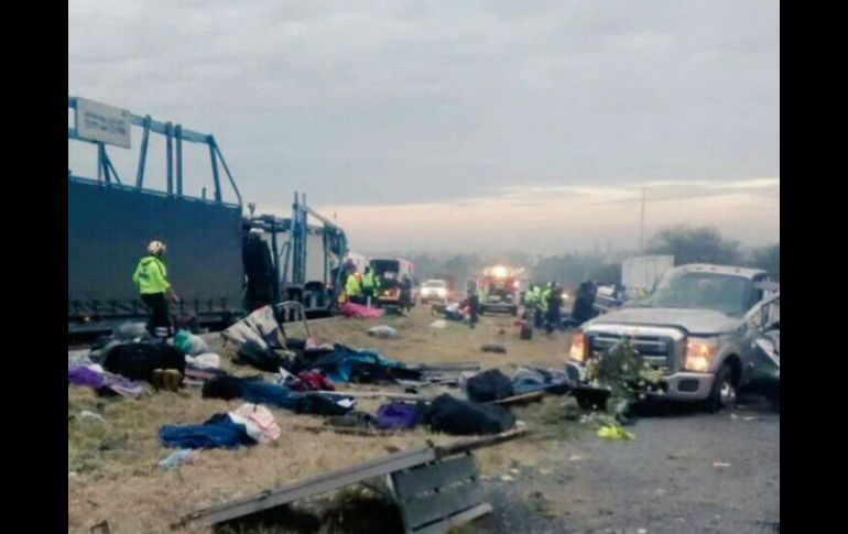 México | Procedían del Estado de México y se dirigían a San Juan de los Lagos Mueren tres peregrinos por choque en la Querétaro-Celaya Procedían del Estado de México y se dirigían a San Juan de los Lagos Por: SUN 26 de enero de 2016 - 09:25 hs Los lesionados reciben atención en hospitales comunitarios. TWITTER / @luismiguelbaraa APASEO EL GRANDE, GUANAJUATO (26/ENE/2016).- Un tráiler de los llamados “nodriza” embistió a un grupo de peregrinos procedentes del Estado de México que se dirigían a San Juan de los Lagos, lo que causó la muerte de tres de ellos y al menos a diez personas heridas, en la Autopista Celaya-Querétaro, en el tramo de la comunidad Tenango el Nuevo. En un reporte preliminar, la Secretaría de Salud del estado informó que diez peregrinos que resultaron lesionados reciben atención en los hospitales comunitarios de los municipios de Apaseo el Alto y Apaseo el Grande. El accidente se registró alrededor de las 06:50 horas de este martes luego de que el vehículo “nodriza” doble remolque sin vehículos, placas 351 DH4 y un camión de 3 toneladas marca Ford 3, color plata, fue alcanzado por un grupo de sanjuaneros, varios de éstos ciclistas. En el lugar fallecieron dos hombres y una mujer identificados como Rosa María de la luz Pérez, de 27 años; Fernando Díaz Leal, de 24 años, éste era el chofer de la camioneta, ambos de la comunidad San Bartolo de Guerrero; y Jesús Bernal, de San José de Villa Guerrero, todos del Estado de México Temas Muertes Estados Carreteras Querétaro Accidentes México Guanajuato Lee También Choque en la colonia Aldama Tetlán deja dos lesionados México se prepara para recibir un nuevo frente frío este sábado "Raymond" se encamina a tierra; aquí su trayectoria de hoy Un país donde la salud mental no existe en el presupuesto Recibe las últimas noticias en tu e-mail Todo lo que necesitas saber para comenzar tu día Registrarse implica aceptar los Términos y Condiciones