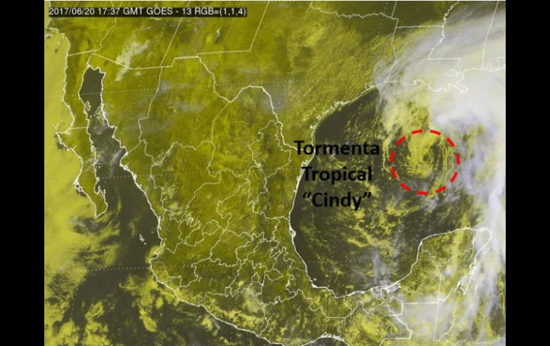 CIUDAD DE MÉXICO (20/JUN/2017).- ''Cindy'', la tercera tormenta tropical del Atlántico, se desarrolló poco después del mediodía sobre el norte de la Península de Yucatán, informó el Servicio Meteorológico Nacional (SMN).A las 13:00 horas, el sistema se ubicó a 520 kilómetros al norte de Puerto Progreso, Yucatán, y a 430 kilómetros al sur de Ciudad Morgan, Louisiana, en Estados Unidos.El fenómeno meteorológico está como semiestacionario con vientos máximos sostenidos de 75 kilómetros por hora y rachas de viento hasta 95 kilómetros por hora.El organismo de la Comisión Nacional del Agua (Conagua) advirtió que los desprendimientos nubosos de ''Cindy'' favorecen el potencial de tormentas fuertes a muy fuertes en Campeche, Yucatán y Quintana Roo.Las previsiones muestran que ''Cindy'' continuará como tormenta tropical hasta el próximo jueves y ante ello, el Meteorológico llamó extremar precauciones a la población en general y atender las recomendaciones emitidas por las autoridades del Sistema Nacional de Protección Civil en cada entidad.
