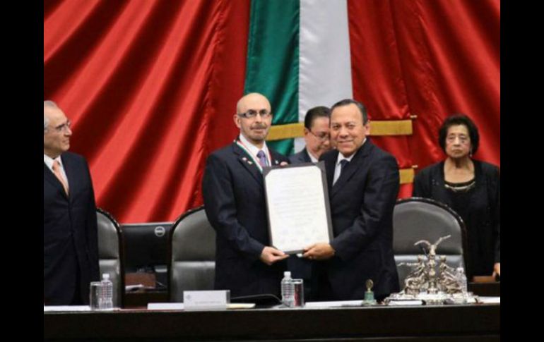 México | Diputados condecoran al primer astronauta de México y hoy catedrático Neri Vela recibe medalla 'Eduardo Neri y Legisladores de 1913' Diputados condecoran al primer astronauta de México y hoy catedrático Por: NTX 15 de diciembre de 2015 - 13:47 hs Vela resaltó que sin valores nacionales, las naciones se vuelven vulnerables. TWITTER / @JLToledoM CIUDAD DE MÉXICO (15/DIC/2015).- Rodolfo Neri Vela, primer astronauta de México y actual catedrático de la Universidad Nacional Autónoma de México, recibió la Medalla "Eduardo Neri y Legisladores de 1913" que otorga anualmente la Cámara de Diputados. Durante una sesión solemne en la que estuvieron presentes su familia; Fernando Franco González Salas, ministro de la Suprema Corte, y Luis Sánchez Jiménez, vicepresidente del Senado, el también investigador subrayó que "sin educación, sin civismo, sin valores nacionales un país no tiene futuro. Es un país débil y vulnerable". Temas Astronautas Premios Poder Legislativo Cámara de Diputados Rodolfo Neri Lee También Harfuch y los medios Cartucho Kenia López Rabadán apuesta por un Congreso de diálogo plural y equilibrado Diputados responden a Lemus sobre diálogo por la Reforma Judicial Recibe las últimas noticias en tu e-mail Todo lo que necesitas saber para comenzar tu día Registrarse implica aceptar los Términos y Condiciones