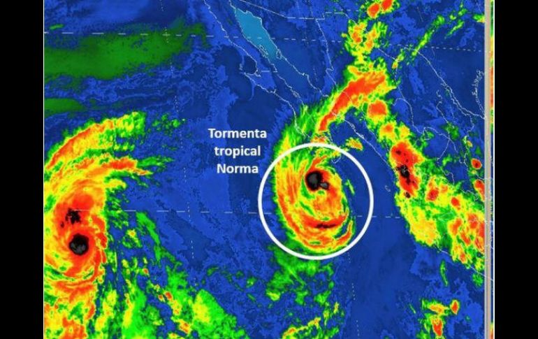CIUDAD DE MÉXICO (18/SEP/2017).- La tormenta tropical "Norma" se desplaza hacia el oeste-noroeste, lo que provocará lluvias en Baja California Sur, Sonora, Sinaloa, Nayarit y Jalisco, reportó el Servicio Meteorológico Nacional (SMN).En el aviso más reciente emitido por el organismo dependiente de la Comisión Nacional del Agua (Conagua) indicó que "Norma" se ubica a 230 kilómetros al suroeste de Cabo San Lucas, Baja California Sur.Precisó que el fenómeno natural registra vientos sostenidos de 85 kilómetros por hora y rachas de 100 kilómetros por hora, por lo que se prevén tormentas puntuales fuertes en Baja California Sur (sur), Sonora (sur), Sinaloa, Nayarit y Jalisco (occidente).Además rachas de vientos superiores a 40 kilómetros por hora en Baja California Sur, Sinaloa y Nayarit. Oleaje de dos a tres metros de altura en Baja California Sur (costa occidental), de uno a dos metros en Baja California Sur (costa oriental), Sinaloa (sur) y Nayarit.Indicó que su desplazamiento es hacia Oeste-noroeste a siete kilómetros por hora.Por ello el Meteorológico recomendó a la población extremar precauciones en general en las zonas de los estados mencionados por lluvias, viento y oleaje (incluyendo la navegación marítima) y atender las recomendaciones emitidas por las autoridades del Sistema Nacional de Protección Civil, en cada entidad.