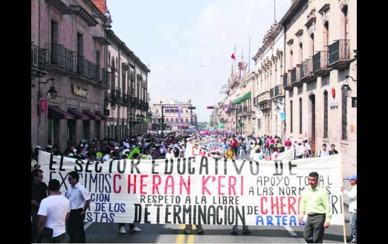 México | La CNTE apoya la protesta estudiantil; buscan presionar a las autoridades Normalistas michoacanos toman 15 alcaldías Exigen la liberación de ocho de sus compañeros que están prisioneros por los hechos de vandalismo del 15 de octubre Por: SUN 23 de octubre de 2012 - 13:36 hs Los normalistas, apoyados por varias organizaciones civiles y la CNTE, bloquearon el Centro de Morelia. EL UNIVERSAL / MORELIA, MICHOACÁN (23/OCT/2012).- Estudiantes normalistas apoyados por la Coordinadora Nacional de Trabajadores de la Educación (CNTE) realizaron movilizaciones para pugnar por la liberación de ocho estudiantes que se mantienen presos desde el jueves pasado a consecuencia de los disturbios del 15 de octubre. Como medida de presión tomaron 15 presidencias municipales. Ayer por la mañana marcharon por el Centro de la ciudad y anunciaron una “toma indefinida” de la mayoría de las dependencias de Gobierno como medida de presión para lograr la liberación de ocho de sus compañeros que permanecen en el Centro de Readaptación Social “Francisco J. Múgica”, de Morelia. Al mismo tiempo organizaciones sociales afines a la CNTE, así como padres de familia y normalistas tomaron al menos 15 presidencias municipales en el Estado, con este mismo fin. Entre las alcaldías tomadas se encuentran las de Nahuatzen, La Huacana, Nueva Italia, Lombardía, Turicato, Puruándiro, Uruapan, Tangamandapio, Paracho, Cherán y otras. Los docentes afiliados a la CNTE anunciaron que de manera intermitente bloquearán casetas de cobro de peaje de la Autopista Siglo 21, que enlaza al Distrito Federal con Morelia y Guadalajara. A ocho días de la detención masiva de 174 estudiantes, fueron liberados la mayor parte de ellos, excepto ocho. De ellos, 49 de fueron liberados mediante el pago de una fianza. Temas Michoacán Estados CNTE Lee También ¿Recibiste correo de rechazo de FIFA? Aquí te decimos cuándo es la siguiente venta Trump se reunirá con Putin para negociar fin de la guerra en Ucrania Trump construirá un arco del triunfo en Washington Ascienden a 70 los muertos por las lluvias de los últimos días Recibe las últimas noticias en tu e-mail Todo lo que necesitas saber para comenzar tu día Registrarse implica aceptar los Términos y Condiciones