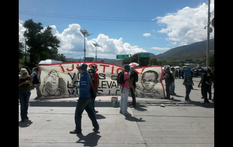 México | Realizan algunos destrozos al equipo que se encuentra en las casetas de cobro Normalistas vandalizan casetas en Autopista del Sol Realizan algunos destrozos a las plumas, cámaras de vigilancia y equipo que se encuentra en las casetas de cobro Por: SUN 5 de octubre de 2014 - 14:39 hs Los manifestantes esperan el arribo de autoridades para que puedan llegar a algún diálogo. SUN / C. Rogel CHILPANCINGO, GUERRERO (05/OCT/2014).- Alumnos de las escuelas normales de Guerrero tomaron la caseta de Palo Alto, en la autopista del Sol y con rumbo al destino de Acapulco, donde realizan algunos destrozos a las plumas, cámaras de vigilancia y equipo que se encuentra en las 10 casetas de cobro. Los estudiantes llegaron a la zona después de bloquear por algunas horas la carretera a la altura del parador de Marqués, donde exigen que se esclarezca la desaparición de sus 43 compañeros, que fueron vistos con vida por última vez en el municipio de Iguala. El grupo de manifestantes, entre los que se encuentran padres y amigos de los alumnos que desaparecieron hace más de una semana, esperan el arribo de autoridades para que puedan llegar a algún diálogo, con relación a las investigaciones que se siguen por los hechos registrados el viernes de la semana pasada, donde algunos estudiantes y civiles perdieron la vida. Temas Estados Guerrero Manifestaciones en México Desapariciones y denuncias Lee También Revelan llamada al 911 con que se reportó la muerte de Diane Keaton Clara Brugada rinde su Primer Informe de Gobierno SMN advierte lluvias y bajas temperaturas en México esta semana Morelos reporta siete muertos tras lluvias de las últimas horas Recibe las últimas noticias en tu e-mail Todo lo que necesitas saber para comenzar tu día Registrarse implica aceptar los Términos y Condiciones