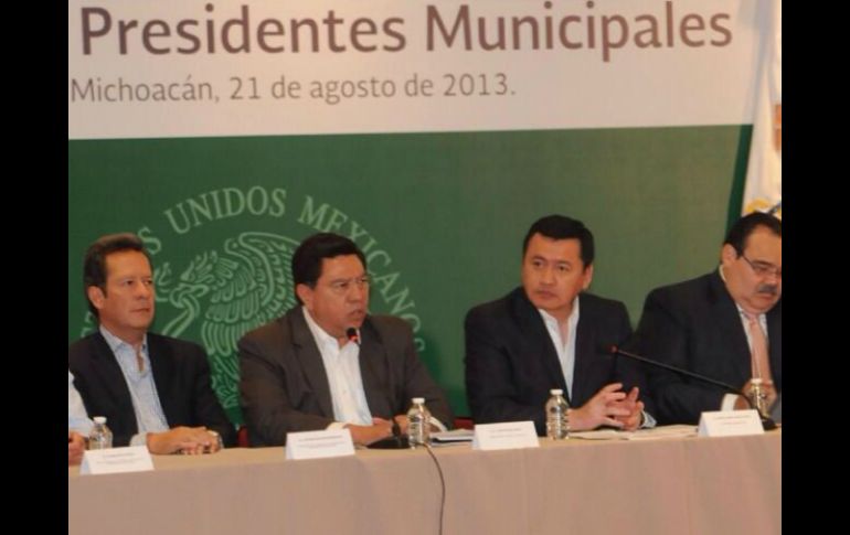 México | Tratan principalmente temas de seguridad en la entidad y los grupos de autodefensa Osorio Chong se reúne con Reyna y 110 alcaldes de Michoacán Tratan principalmente temas de seguridad en la entidad y los grupos de autodefensa Por: SUN 21 de agosto de 2013 - 15:07 hs El gobernador interino de Michoacán publica una fotografía de la reunión en su cuenta de Twitter. TOMADA DE @Jesus_Reyna / MORELIA, MICHOACÁN (21/AGO/2013).- El secretario de Gobernación, Miguel Ángel Osorio Chong, se reunió al medio día de este miércoles y durante un par de horas con 110 alcaldes de los 113 que conforman la entidad y con diputados locales en un evento a puerta cerrada que presidió el gobernador interino de Michoacán, Jesús Reyna García. El gobierno del estado informó a través de un comunicado de prensa, que también estuvieron presentes el secretario de Desarrollo Agrario Territorial y Urbano, Jorge Carlos Ramírez Marín. En esta reunión, según el comunicado, fueron tratados principalmente temas de seguridad y autodefensas en los municipios de la Sierra Costa que en los últimos meses han sufrido una escalada de violencia. Osorio Chong, desde las 15:00 horas, sostiene una reunión con el gabinete de seguridad del gobierno del estado y se espera la presencia del secretario de la Marina, Almirante Vidal Francisco Soberón Sanz, y el titular de la Secretaria de la Defensa Nacional (Sedena), Salvador Cienfuegos Zepeda. Temas Segob Michoacán Estados Miguel Ángel Osorio Chong Autodefensa Lee También "Sonia" marcha en el Pacífico; sube la potencialidad ciclónica China amenaza con "pelear hasta el final" si EU mantiene los nuevos aranceles Estos son los estados en alerta por posible propagación de dengue Despliegan operativo tras bloqueos en Chiapas Recibe las últimas noticias en tu e-mail Todo lo que necesitas saber para comenzar tu día Registrarse implica aceptar los Términos y Condiciones