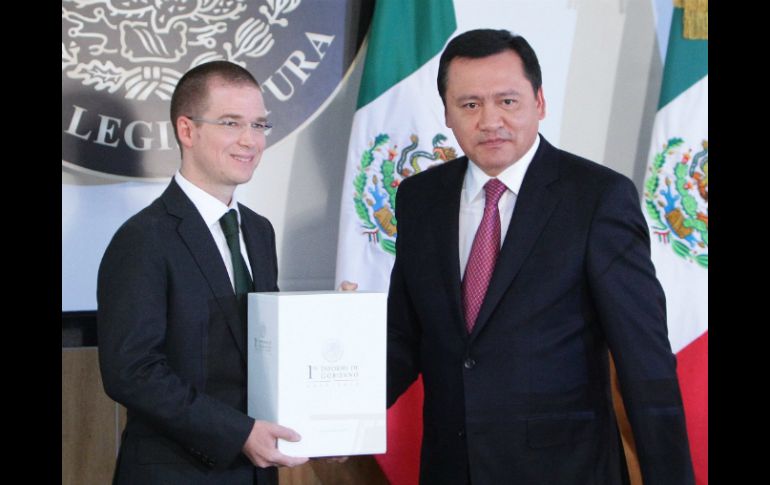 México | Los presidentes de las cámaras de Diputados y Senadores reciben el documento Osorio entrega el Informe de Gobierno de Peña Los presidentes de las cámaras de Diputados y Senadores reciben el documento Por: EL INFORMADOR 1 de septiembre de 2013 - 16:36 hs Ricardo Anaya y Miguel Ángel Osorio (d) durante la entrega. EFE / CIUDAD DE MÉXICO (01/SEP/2013).- En conferencia de prensa el secretario de Gobernación, Miguel Ángel Osorio Chong, entregó el Primer Informe de Gobierno del Presidente de México, Enrique Peña Nieto. “Por mandato constitucional, se entrega este Primer Informe de Gobierno, que detalla y da testimonio del esfuerzo de todos los mexicanos para lograr un mejor país”, dijo el titular de la Secretaría de Gobernación (Segob), al momento que aclaró que el documento presenta la rendición de cuentas del periodo iniciado el 1 de diciembre al 31 de agosto. Osorio Chong hizo especial énfasis en que la política debe servir para beneficiar a la población y no debe anteponerse los intereses de unos cuantos. Señaló que el Gobierno Federal estará atento a la revisión que den los legisladores de las cámaras de diputados y senadores y a la vez les advirtió que ellos tienen la crucial responsabilidad de discutir la agenda planeada para el periodo ordinario de sesiones para el bien de la población. Al hacer entrega del documento al presidente general del Congreso, el panista Ricardo Anaya, comentó que el Presidente Enrique Peña Nieto está convencido de seguir avanzando en los acuerdos y necesidad de combatir los obstaculos para construir un mejor destino para los mexicanos. Por su parte, Ricardo Anaya aseguró que los legisladores realizarán un análisis puntual y detallado del Informe de Gobierno e informó que, de ser necesario, solicitarán información adicional al Gobierno. Además, hizo entrega de una constancia de repepción del documento al secretario Osorio Chong. Temas Gobierno de México Congreso Enrique Peña Nieto Informe de Gobierno Miguel Ángel Osorio Chong Recibe las últimas noticias en tu e-mail Todo lo que necesitas saber para comenzar tu día Registrarse implica aceptar los Términos y Condiciones