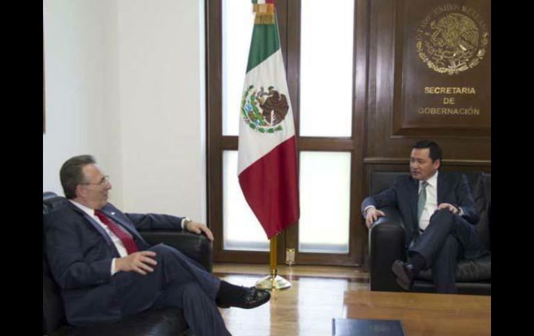 México | Se reúnen en el marco de la visita de Janet Napolitano Osorio y Wayne dialogan sobre la Iniciativa Mérida Se reúnen en el marco de la visita de la secretaria de Seguridad Interna de Estados Unidos, Janet Napolitano Por: SUN 12 de diciembre de 2012 - 18:06 hs Imagen tomada de Twitter de Anthony Wayne y Miguel Ángel Osorio. ESPECIAL / CIUDAD DE MÉXICO (12/DIC/2012).- El titular de la Secretaría de Gobernación, Miguel Ángel Osorio Chong, y el embajador de Estados Unidos en México, Anthony Wayne, sostuvieron un encuentro en el que abordaron la posibilidad de continuar la cooperación bilateral en materia de seguridad bajo el esquema de la Iniciativa Mérida. Por medio de un comunicado, la sede diplomática informó así sobre los temas que trataron, que incluyeron también cuestiones migratorias y fronterizas, horas antes de que una delegación estadounidense encabezada por la secretaria de Seguridad del Interior, Janet Napolitano, arribe a México para reunirse con integrantes del gabinete del presidente Enrique Peña Nieto. Se informó que como parte de sus visitas de cortesía a miembros del gabinete del nuevo gobierno, Wayne se reunió hoy con Osorio Chong “para dialogar sobre la fuerte cooperación entre México y los Estados Unidos en una variedad de temas que incluyen cuestiones migratorias y fronterizas, seguridad pública y mayor cooperación”. Durante el encuentro “dialogaron sobre continuar la coordinación y cooperación bajo la Iniciativa Mérida”, informó la embajada. “Esperamos con interés continuar trabajando de manera estrecha y eficaz con el secretario Osorio Chong y su equipo”, dijo el embajador Wayne. También se abordó el tema de la visita de Napolitano, que se centrará en la seguridad pública en la región fronteriza, sobre el manejo migratorio y otros temas. La secretaria Napolitano viajará a México el 13 de diciembre junto con el director de la Agencia de Inmigración y Aduanas (ICE) John Morton, el subcomisionado de la Agencia de Aduanas y Protección Fronteriza (CBP), David Aguilar, y el subsecretario para Asuntos Internacionales, Alan Bersin. El objetivo es reunirse con miembros del gabinete de Peña Nieto para dialogar sobre los esfuerzos binacionales, el comercio, y aumentar el intercambio de información. Temas Segob Anthony Wayne Miguel Ángel Osorio Chong Lee También El Tri Sub-17 femenil va por la revancha mundialista en Marruecos Panorámica Mirador Residencial lanza su desarrollo vertical Sociales: Subasta de Arte, obras a beneficio de Helen Keller Sociales: ¡Doble festejo, doble diversión! La magia de Isabella y la velocidad de Rodrigo Recibe las últimas noticias en tu e-mail Todo lo que necesitas saber para comenzar tu día Registrarse implica aceptar los Términos y Condiciones