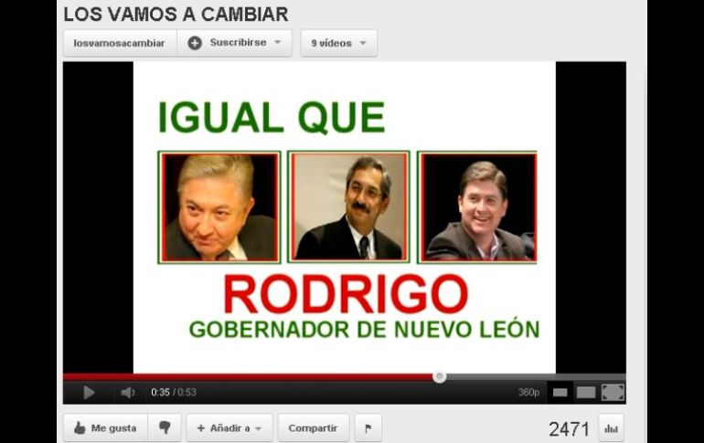 México | Advierten sobre un posible endeudamiento para la población del estado PAN en Nuevo León lanza campaña en Youtube contra Medina El video también denuncia el pago de una cuota que exige la dirigencia nacional del PRI para financiar la campaña presidencial de Enrique Peña Nieto Por: EL INFORMADOR 10 de noviembre de 2011 - 19:19 hs Captura del video que denuncia el supuesto endeudamiento orquestado por miembros del PRI en Nuevo León. ESPECIAL / MONTERREY, NUEVO LEÓBN (10/NOV/2011).- El Comité Directivo Estatal del Partido Acción Nacional (PAN) lanzó una campaña a través del portal de videos Youtube en contra del gobernador Rodrigo Medina, en la que advierten de un posible endeudamiento para los más de 4 millones de neoleoneses que residen en la entidad. A través de la liga: www.youtube/losvamosacambiar los panistas buscan evitar que en Nuevo León se cometa otro "moreirazo". En el video también se denuncia el pago de la supuesta "cuota" que exige la dirigencia nacional del Partido Revolucionario Institucional (PRI) para financiar la campaña presidencial de Enrique Peña Nieto. "Si en Coahuila ese modelo de gestión lo aplicaron y lo convirtieron en un ‘Moreirazo', en Nuevo León no vamos a permitir un ‘Rodrigazo'. Por ello, nuestro partido utilizará todas las vías posibles para detener que se replique este esquema con más deuda y más impuestos", dijo la presidenta del albiazul en Nuevo León, Sandra Pámanes. Acompañada del coordinador de los diputados locales Hernán Salinas y del legislador Martín López, afirmó que saldrán a las calles, a las plazas y a las redes sociales para alertar del peligro que representa un “Rodrigazo” en Nuevo León. "Con el aval de su partido en el Congreso local y nuestro voto en contra, Rodrigo Medina solicitó endeudar al estado a través de créditos que lejos de ayudar a solucionar las grandes y graves carencias de los nuevoleoneses, sólo han servido para pagar las frivolidades y caprichos del gobernador y sus empleados", expuso Salinas. A pesar de que el gobernador indicó que se llevan a cabo una serie de medidas de austeridad en el gobierno estatal; los panistas pidieron no endeudar a las futuras generaciones. "Señor gobernador: si de verdad usted quiere a Nuevo León, le exigimos que dé marcha atrás a su política de endeudamiento y realice los ajustes necesarios en su gabinete e instrumente rigurosas políticas de austeridad que eviten que sean los ciudadanos quienes tengan que pagar esta deuda por varias generaciones. "¿Por qué si se queja que la federación castiga a nuestro estado, no reconoce que si no fuera por la gestión y apoyo del presidente Felipe Calderón hoy estaríamos peor que como nos tiene su administración", cuestionan los panistas. Temas PAN Estados Nuevo León Rodrigo Medina Recibe las últimas noticias en tu e-mail Todo lo que necesitas saber para comenzar tu día Registrarse implica aceptar los Términos y Condiciones