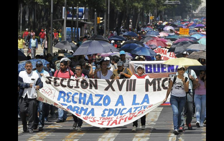 México | El contingente exige que deroguen la reforma educativa y arriban al Palacio de Gobierno Padres de normalistas marchan con la CETEG en Guerrero El contingente exige que deroguen la reforma educativa y arriban al Palacio de Gobierno Por: SUN 11 de junio de 2015 - 12:56 hs Durante el trayecto de la marcha, invitaron a la población a sumarse a ellos y a su lucha. EFE / J. Méndez CHILPANCINGO, GUERRERO (11/JUN/2015).- Maestros de la Coordinadora Estatal de Trabajadores de la Educación de Guerrero (CETEG), respaldados por padres de los 43 normalistas desaparecidos de Ayotzinapa y otras organizaciones civiles, marcharon para exigir la abrogación de la reforma educativa. Los docentes se manifiestan como parte de las actividades de su órgano máximo: la Coordinadora Nacional de Trabajadores de la Educación ( CNTE), realizadas en estados como Chiapas, Michoacán y Oaxaca. Tras su marcha, los profesores arribaron al Palacio de Gobierno. Cabe señalar que en el caso específico del magisterio disidente local, también exigieron justicia por la muerte de su compañero, Antonio Vivar. La marcha partió minutos antes del mediodía del edificio sindical de la CETEG, al sur de la ciudad, y se dirigió hacia el inmueble gubernamental, en el que han protestado múltiples ocasiones. Frente al primer contingente un maestro cargaba un féretro emulando en el que fue sepultado Vivar Díaz. Ramos Reyes Guerrero, secretario general de la CETEG, exigió castigo a la Policía Federal y al Ejército, a quienes responsabilizó de la muerte del joven en Tlapa el domingo pasado tras un choque con elementos de esas corporaciones. Dijo que no terminarían sus acciones ni sus protestas, "urge la presentación con vida de los 43; ya basta tanta represión a nuestros compañeros a nivel nacional y del estado. No lo vamos a permitir, alto a la represión". Temas Guerrero CNTE Caso Ayotzinapa Lee También Sociales: André e Isabella reciben la Primera Comunión en familia Localizan muerto a Bertoldo Pantaleón, sacerdote desaparecido en Guerrero Metro CDMX: Estas son las estaciones cerradas por marcha del 2 de octubre Sociales: El gran triunfador: Ernesto Javier “Calita” Recibe las últimas noticias en tu e-mail Todo lo que necesitas saber para comenzar tu día Registrarse implica aceptar los Términos y Condiciones