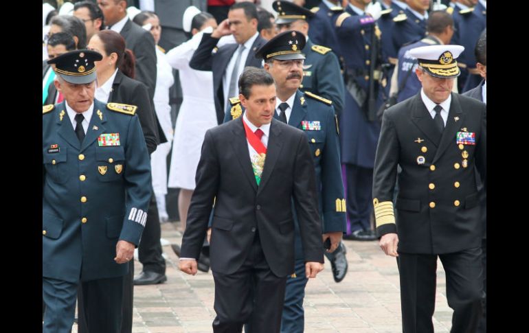 México | El Presidente monta una guardia de honor ante el Altar de la Patria Peña Nieto conmemora Gesta Heroica de los Niños Héroes Acompañado por su gabinete legal, Enrique Peña Nieto pasa lista de los cadetes que defendieron su Patria Por: NTX 13 de septiembre de 2014 - 11:25 hs CIUDAD DE MÉXICO (13/SEP/2014).- El Presidente Enrique Peña Nieto colocó una ofrenda floral y montó una guardia de honor ante el Altar a la Patria, en conmemoración del 167 aniversario de la gesta heroica de los Niños Héroes de Chapultepec. Acompañado por miembros de su gabinete legal y ampliado, de representantes de los poderes legislativo y judicial y del gobierno capitalino, el mandatario pasó lista a cada uno de los cadetes del Colegio Militar que dieron su vida en defensa de la Patria. El presidente Peña Nieto recordó los nombres del teniente Juan de la Barrera y de los cadetes Juan Escutia, Agustín Melgar, Vicente Suárez, Fernando Montes de Oca y Francisco Márquez, quienes defendieron el Castillo de Chapultepec del ejército invasor estadounidense, encabezado por el general Winfield Scott. Entregó espadines a los cadetes del Heroico Colegio Militar Josué Azalel Gutiérrez, Anabel Ríos, Carlos Hernández, Adriana Corral Flores, Atzín Cedric Sandoval y Adriana Ortega Sandoval, como símbolo de distinción, responsabilidad y compromiso para el ejercicio de mando. Oradora única, la cadete del Heroico Colegio Militar, Brianda Zulema Cruz, recordó que un 13 de septiembre pero de 1847 seis grandes héroes nacionales ofrendaron su vida para defender el Castillo de Chapultepec y demostraron que "nunca se es demasiado joven para defender el suelo patrio y dar la vida por él". Resaltó que los seis cadetes militares lucharon hasta el límite de sus fuerzas y de su último aliento porque tenían consciencia plena de lo que estaba en juego era la existencia misma de México, y tan glorioso fue ese hecho que le valió quedar inscrito como un acto de honor y bravura en la historia del país. Resaltó que "sólo con la suma de todos, lograremos impulsar y potencializar todo el proceso de transformación que hoy vivimos, conduciéndonos hacia mejores escenarios de bienestar general, aunque sin duda vivimos una mejor patria". Luego, el jefe del Ejecutivo junto con los presidentes de las Cámaras de Diputados, Silvano Aureoles; Senadores, Miguel Barbosa, de la Suprema Corte, Juan Silva, y del jefe de gobierno capitalino, Miguel Ángel Mancera, colocaron una ofrenda de flores y montaron una guardia de honor frente al Altar a la Patria. Poco antes de concluir el evento se dio una salva de fusilería en honor de los Niños Héroes, se cantó el himno del Heroico Colegio Militar y el Himno Nacional, y hubo un toque militar de silencio y saludos a la Bandera. Temas Gobierno de México Enrique Peña Nieto Fiestas Patrias Niños Héroes Lee También México vs Argentina: ¿Quién ganará el partido según la IA? CDMX, con pronóstico de lluvias fuertes hoy sábado Dónde ver EN VIVO el México vs Argentina por el Mundial Sub-20 ¿Dónde ver EN VIVO el partido amistoso México vs Colombia? Recibe las últimas noticias en tu e-mail Todo lo que necesitas saber para comenzar tu día Registrarse implica aceptar los Términos y Condiciones