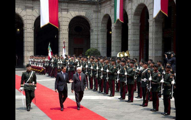 México | El Mandatario mexicano recibe a su homólogo Tony Tan Keng Yam en el Palacio Nacional Peña Nieto da la bienvenida al presidente de Singapur El Mandatario mexicano recibe a su homólogo Tony Tan Keng Yam en el Palacio Nacional Por: NTX 10 de junio de 2016 - 12:27 hs En el Patio Central del recinto, se hace la presentación de las comitivas oficiales y pasaron revista a las tropas de honor. AP / E. Verdugo CIUDAD DE MÉXICO (10/JUN/2016).- El Presidente Enrique Peña Nieto dio la bienvenida oficial en Palacio Nacional a su homólogo de Singapur, Tony Tan Keng Yam. Ambos mandatarios estuvieron acompañados por sus respectivas esposas, Angélica Rivera y Mary Chee Bee Kiang. En el Patio Central del recinto, entonaron los himnos nacionales de ambos países, se hizo la presentación de las comitivas oficiales y pasaron revista a las tropas de honor. Temas Gobierno de México Enrique Peña Nieto Relaciones Exteriores Singapur Recibe las últimas noticias en tu e-mail Todo lo que necesitas saber para comenzar tu día Registrarse implica aceptar los Términos y Condiciones