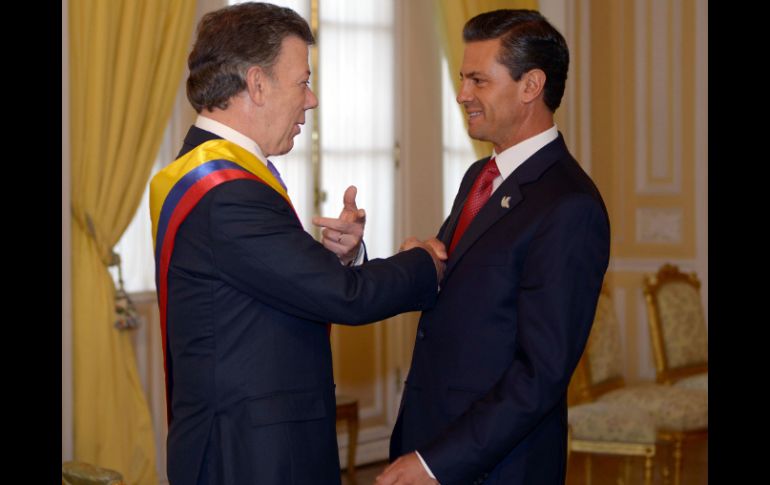 México | El Mandatario mexicano asistió a la toma de posesión de su homólogo Juan Manuel Santos Peña Nieto desea mucho éxito a presidente de Colombia El Mandatario mexicano asistió a la toma de posesión de su homólogo Juan Manuel Santos Por: NTX 7 de agosto de 2014 - 21:02 hs Enrique Peña Nieto felicita al mandatario colombiano a través de su cuenta de Twitter. NTX / CIUDAD DE MÉXICO (07/AGO/2014).- El Presidente Enrique Peña Nieto deseó al mandatario de Colombia, Juan Manuel Santos, mucho éxito en su segundo periodo al frente de la presidencia de ese país sudamericano. En su cuenta de Twitter, el jefe del Ejecutivo mexicano escribió "Presidente @JuanManSantos, mucho éxito en su segunda gestión como Jefe de Estado y de Gobierno de Colombia. Un gusto haberlo acompañado hoy". Peña Nieto concluyó la tarde de este jueves su visita a Colombia, donde asistió a la toma de posesión de su homólogo Juan Manuel Santos. El Mandatario mexicano partió en el avión presidencial desde la base militar Catam en Bogotá, capital colombiana, con destino a Tuxtla Gutiérrez, estado mexicano de Chiapas. Fue uno de los 11 mandatarios extranjeros presentes en la ceremonia de inicio del segundo mandato de Santos, a la que también acudieron vicepresidentes y cancilleres de diversos países. Temas Gobierno de México Colombia Enrique Peña Nieto Juan Manuel Santos Recibe las últimas noticias en tu e-mail Todo lo que necesitas saber para comenzar tu día Registrarse implica aceptar los Términos y Condiciones