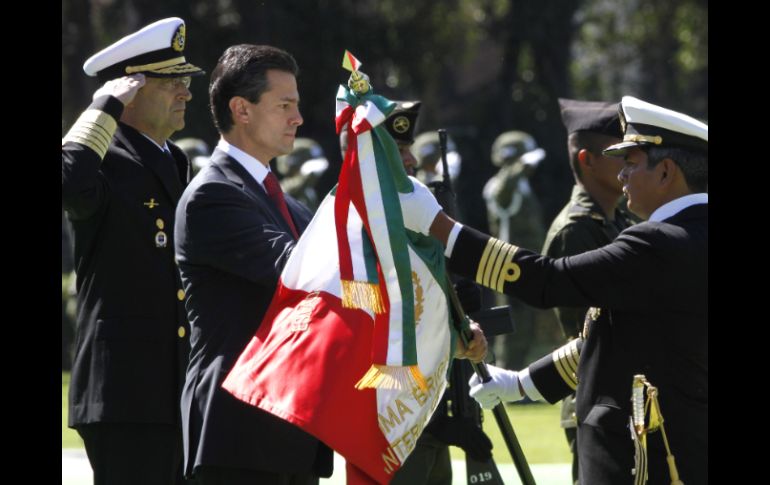 México | La ceremonia cívica se realiza en el campo Marte Peña Nieto encabeza conmemoración del Día de la Bandera El funcionario federal toma protesta al personal que custodiará la enseña nacional Por: NTX 24 de febrero de 2013 - 08:35 hs El Mandatario acudirá después del acto, como invitado de honor a la 134 Asamblea General Ordinaria del CTM. NTX / CIUDAD DE MÉXICO (24/FEB/2013).- El presidente Enrique Peña Nieto encabezó esta mañana la ceremonia conmemorativa del Día de la Bandera, en el Campo Marte, donde rindió honores e izó el lábaro patrio. Posteriormente, el funcionario federal tomó protesta al personal que custodiará la enseña nacional, a partir de esta fecha y entregó el lábaro patrio. Al acto acudieron los presidentes de la Cámara de Diputados, Francisco Arroyo Vieyra, y del Senado, Ernesto Cordero; el ministro de la Suprema Corte de Justicia de la Nación (SCJN), Luis María Aguilar, así como los secretarios de Gobernación, Miguel Ángel Osorio Chong; de la Marina, Vidal Francisco Soberón Sanz, y de la Defensa, Salvador Cienfuegos Zepeda. Temas Gobierno de México Bandera Mexicana Enrique Peña Nieto CTM Recibe las últimas noticias en tu e-mail Todo lo que necesitas saber para comenzar tu día Registrarse implica aceptar los Términos y Condiciones
