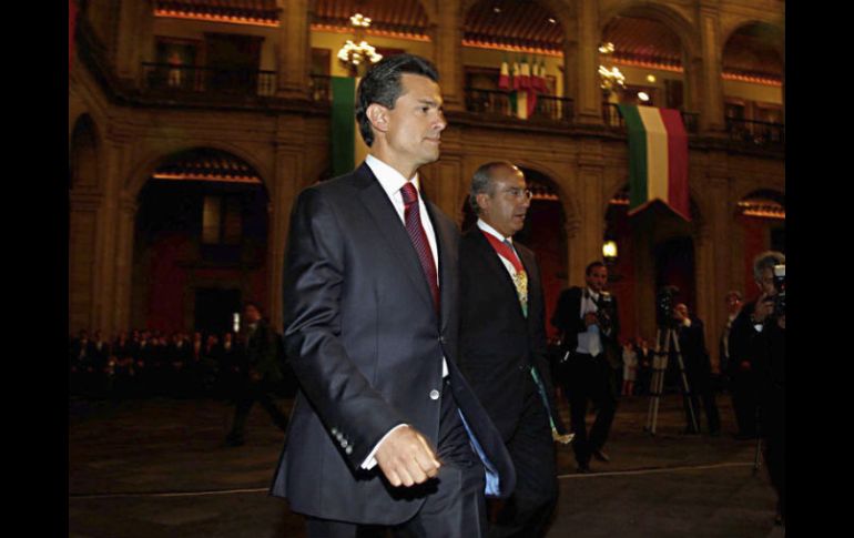México | Ceremonia en Palacio Nacional Peña Nieto está al mando de México El mexiquense jura hoy como Presidente en la Cámara de Diputados, en medio de un fuerte dispositivo de seguridad Por: EL INFORMADOR 1 de diciembre de 2012 - 02:31 hs Felipe Calderón y Enrique Peña Nieto se retiran después de la ceremonia de la entrega de mando. EL UNIVERSAL / CIUDAD DE MÉXICO (01/DIC/2012).- Felipe Calderón entregó el mando del país a Enrique Peña Nieto, quien hoy jura como el próximo Presidente de México. Calderón Hinojosa recibió de un cadete del Colegio Militar la Bandera Nacional que enseguida entregó Peña Nieto, con lo que se concretó la “traslación” del mando de la fuerza pública. Al término del acto de relevo de escolta de la Bandera Nacional, Calderón Hinojosa y Peña Nieto saludaron primero a quienes integrarán el gabinete del presidente entrante y luego hicieron lo mismo con los miembros del gabinete saliente. La ceremonia de anoche en el Patio de Honor del Palacio Nacional fue similar a la de hace seis años, cuando Calderón recibió el poder de parte de Vicente Fox Quesada. Peña Nieto arribará hoy a la Cámara de Diputados para la ceremonia de juramente y posteriormente emitirá un mensaje a la Nación desde el Patio Central del Palacio Nacional. De acuerdo al programa, Felipe Calderón llegará al salón de sesiones y en seguida lo hará el Presidente de los Estados Unidos Mexicanos, Enrique Peña Nieto. Será a las 11:00 horas cuando Peña Nieto rinda protesta, después recibirá la banda presidencial de manos del presidente del Congreso, Jesús Murillo, y siguen los primeros honores de ordenanza a Peña Nieto, que consisten en el toque y canto del Himno Nacional. Protesta no pasa a mayores Anoche, mientras Calderón le entregaba el poder a Enrique Peña Nieto, un grupo de poco más de 30 personas se manifestaban entre las calle de Madero y Palmas, en el Centro Histórico capitalino. Elementos de la Policía Federal les impidieron el paso al Zócalo. Con consignas y mantas, los manifestantes exigían a los efectivos que los dejaran pasar. “Estamos aquí para expresar nuestro rechazo a la toma de poder que tendrá Enrique Peña a la medianoche, no nos dejan pasar porque haremos ruido, eso nos dijeron los policías”, comentó horas antes de la ceremonia Adrián, líder de un grupo ligado a #Yosoy132. El cerco en el Zócalo de parte de la Policía Federal provocó fuertes críticas en la red social Twitter. “Ofende que el EMP tome nuestra ciudad. Por qué Peña Nieto no toma posesión en Toluca?”, escribió el académico @sergioaguayo. Incluso los usuarios crearon la etiqueta #MañaEPN para hablar de la toma de posesión. El usuario @Hiperreal escribió: “Mañana EPN asume el cargo como uno de los presidentes más desprestigiados de la historia. Ni legitimidad, ni capacidad”. “No les quiero amargar su fin de semana de quincena. Pero desde mañana EPN es nuestro presidente”, escribió @AdrianFalconZ. Hoy habrá otra protesta en el Ángel de la Independencia, mientras que en las inmediaciones de la Cámara baja se mantendrá el cerco que se colocó desde la semana pasada. Ayer el interior de la Cámara de Diputados había sido ocupado ya, plenamente, por elementos del Estado Mayor Presidencial y de la Policía Federal Preventiva. La cita, al menos para los reporteros, ha sido a partir de las siete de la mañana; pero el Pleno de Congreso General comenzará a sesionar a partir de las nueve, para los posicionamientos políticos de los grupos parlamentarios, que deberán ser previos a la llegada del primero de los dos invitados principales: Felipe Calderón Hinojosa, y después Enrique Peña Nieto. Nadie, anoche, dudaba de que técnicamente sería más que posible que Calderón ahora sí pudiera ingresar a San Lázaro, como no lo hizo en 2006, que tuvo que llegar al salón de plenos a través de puertas laterales y traseras, y con ayuda del personal de seguridad de San Lázaro y del Estado Mayor Presidencial. Desde de las ocho y media de la mañana, han previsto que comenzarán a llegar los invitados especiales, cuyo lugar será el palco del segundo piso. Y, por esos mismos minutos, estarán llegando también los miembros del gabinete presidencial. Ayer la fuerza pública comenzaba a cerrar las calles aledañas. Había gente que, presurosa, se metía a sus casas. Siempre lo negaban, pero lo que estaba ocurriendo a las ocho y minutos de la noche, en San Lázaro, era como una suerte de estado de sitio. Entre los invitados que han confirmado su presencia en la ceremonia están los gobernantes de las 32 entidades federativas; los presidentes de los congresos estatales y de los tribunales superiores de Justicia del país. OPINAN EXPERTOS Primeras lecturasCIUDAD DE MÉXICO.- El equipo del mexiquense dio a conocer los nombres de quienes integrarán el próximo gabinete (ver gráfico). Para José Antonio Crespo, politólogo del Centro de Investigación y Docencia Económicas (CIDE), “los nombramientos de Miguel Osorio Chong, José Antonio, Meade y de Emilio Chuayffet son gente de experiencia. En tanto que el politólogo Ricardo Raphael, destacó que Peña Nieto colocó en la Secretaría de Educación a Emilio Chuayffet “para resolver el nudo que es devolverle la rectoría al Estado de la política educativa frente a la maestra Elba Esther Gordillo”. Gerardo Gutiérrez Candiani, presidente del Consejo Coordinador Empresarial (CCE), dijo que en materia de Política Económica, “damos un voto de confianza al recién nombrado gabinete presidencial, esperando que cumplan las responsabilidades que ahora asumieron con capacidad, eficacia y compromiso”. El politólogo Leonardo Curzio fue más mesurado al decir que hay mucha experiencia política “que no necesariamente están canalizados en las secretarías que les ha tocado. Hay demasiada política y haría más falta técnica, son ex gobernadores”. En Puebla, el gobernador Rafael Moreno Valle Ros